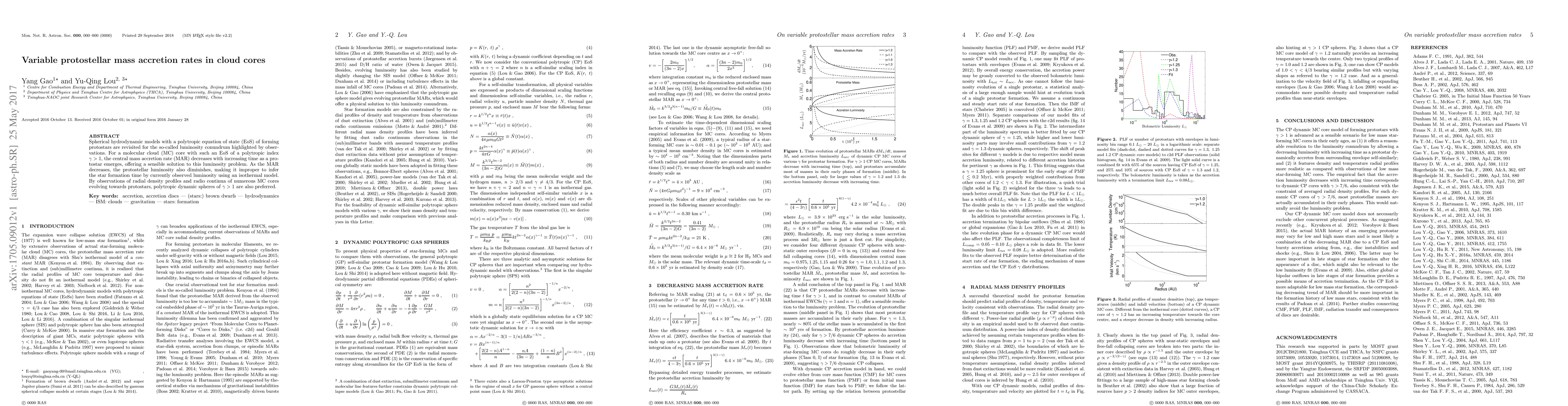Spherical hydrodynamic models with a polytropic equation of state (EoS) for forming protostars are revisited in order to investigate the so-called luminosity conundrum highlighted by observations. For a molecular cloud (MC) core with such an EoS with polytropic index $\gamma$ >1, the central mass accretion rate (MAR) decreases with increasing time as a protostar emerges, offering a sensible solution to this luminosity problem. As the MAR decreases, the protostellar luminosity also decreases, meaning that it is invalid to infer the star formation time from the currently observed luminosity using an isothermal model. Furthermore, observations of radial density profiles and the radio continua of numerous MC cores evolving towards protostars also suggest that polytropic dynamic spheres of $\gamma$ > 1 should be used in physical models.