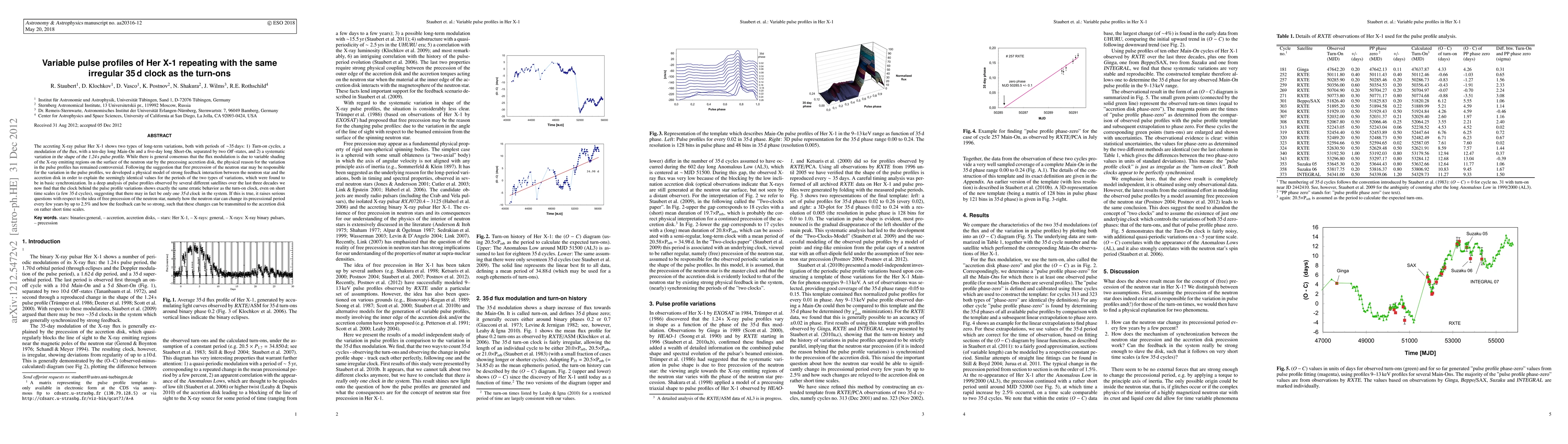 The accreting X-ray pulsar Her X-1 shows two types of long-term variations, both with periods of ~35 days: 1) Turn-on cycles, a modulation of the flux}, with a ten-day long Main-On and a five-day long Short-On, separated by two Off-states, and 2) a systematic variation in the shape of the 1.24 s pulse profile. While there is general consensus that the flux modulation is due to variable shading of the X-ray emitting regions on the surface of the neutron star by the precessing accretion disk, the physical reason for the variation in the pulse profiles has remained controversial. Following the suggestion that free precession of the neutron star may be responsible for the variation in the pulse profiles, we developed a physical model of strong feedback interaction between the neutron star and the accretion disk in order to explain the seemingly identical values for the periods of the two types of variations, which were found to be in basic synchronization. In a deep analysis of pulse profiles observed by several different satellites over the last three decades we now find that the clock behind the pulse profile variations shows exactly the same erratic behavior as the turn-on clock, even on short time scales (a few 35 d cycles), suggesting that there may in fact be only one 35 d clock in the system. If this is true, it raises serious questions with respect to the idea of free precession of the neutron star, namely how the neutron star can change its precessional period every few years by up to 2.5% and how the feedback can be so strong, such that these changes can be transmitted to the accretion disk on rather short time scales.
