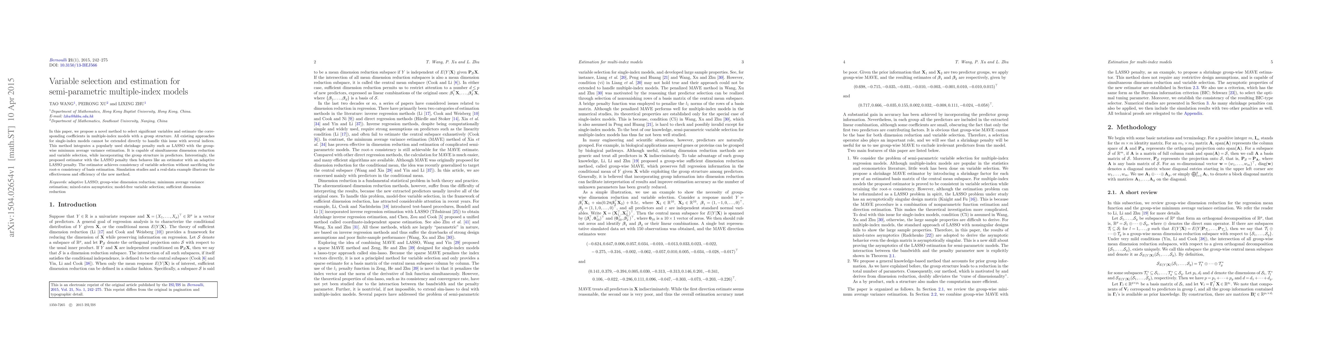 This paper introduces a new method for variable selection and coefficient estimation in semi-parametric multiple-index models, integrating LASSO with group-wise minimum average variance estimation to handle group structures. The proposed estimator achieves consistent variable selection and maintains the root-$n$ consistency of basis estimation, as demonstrated through simulations and real-data analysis.