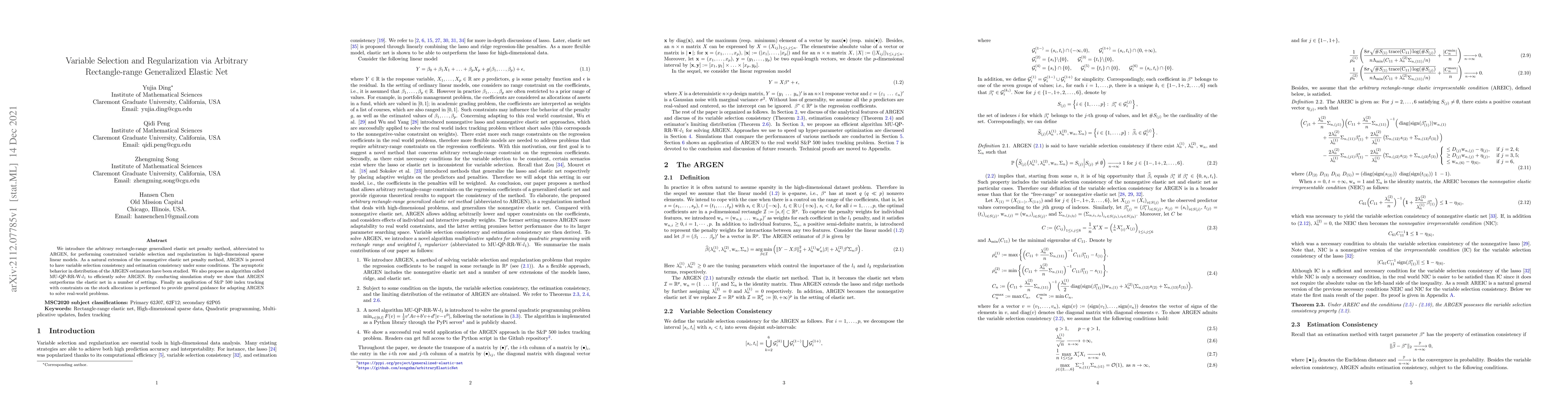 We introduce the arbitrary rectangle-range generalized elastic net penalty method, abbreviated to ARGEN, for performing constrained variable selection and regularization in high-dimensional sparse linear models. As a natural extension of the nonnegative elastic net penalty method, ARGEN is proved to have variable selection consistency and estimation consistency under some conditions. The asymptotic behavior in distribution of the ARGEN estimators have been studied. We also propose an algorithm called MU-QP-RR-W-$l_1$ to efficiently solve ARGEN. By conducting simulation study we show that ARGEN outperforms the elastic net in a number of settings. Finally an application of S&P 500 index tracking with constraints on the stock allocations is performed to provide general guidance for adapting ARGEN to solve real-world problems.