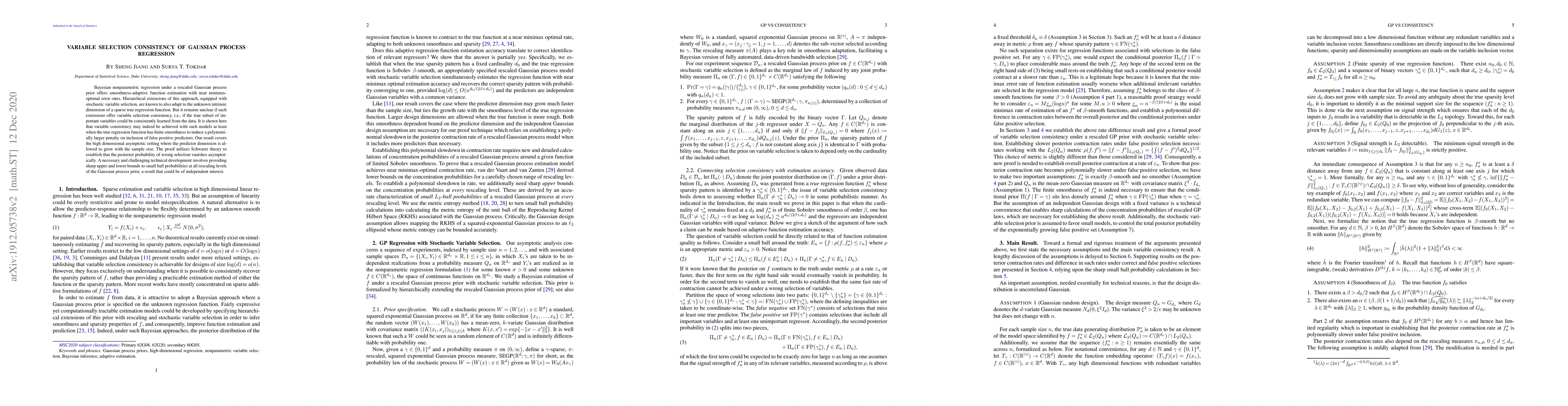 This paper demonstrates that hierarchical Gaussian process regression models with stochastic variable selection can achieve variable selection consistency, meaning the true important variables can be reliably identified, provided the true regression function has finite smoothness. The proof leverages Schwartz theory and provides sharp bounds on small ball probabilities for the Gaussian process prior.