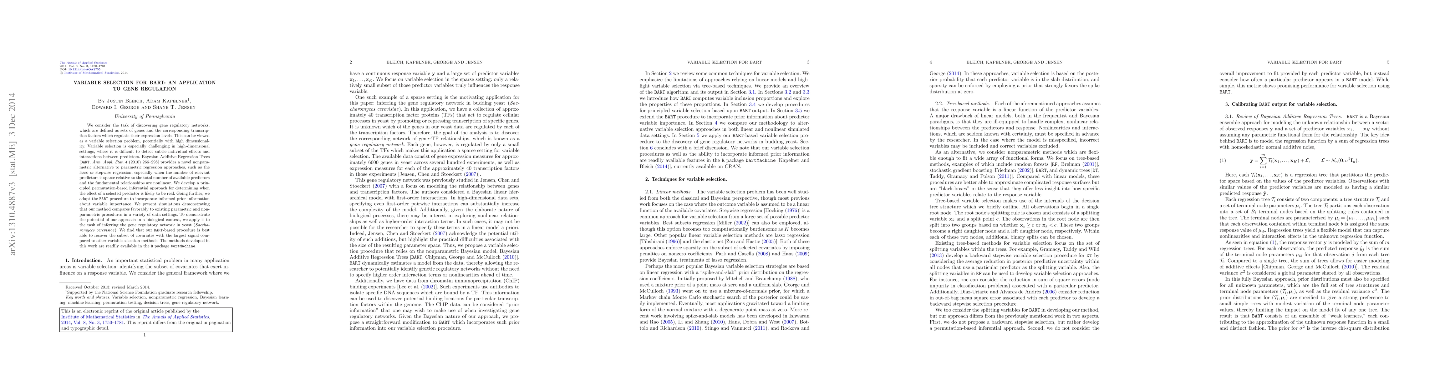 This paper develops a permutation-based inferential approach for Bayesian Additive Regression Trees (BART) to tackle high-dimensional variable selection in gene regulatory networks, demonstrating superior performance in simulations and successfully applying it to infer gene regulatory networks in yeast. The method is available in the R package bartMachine.