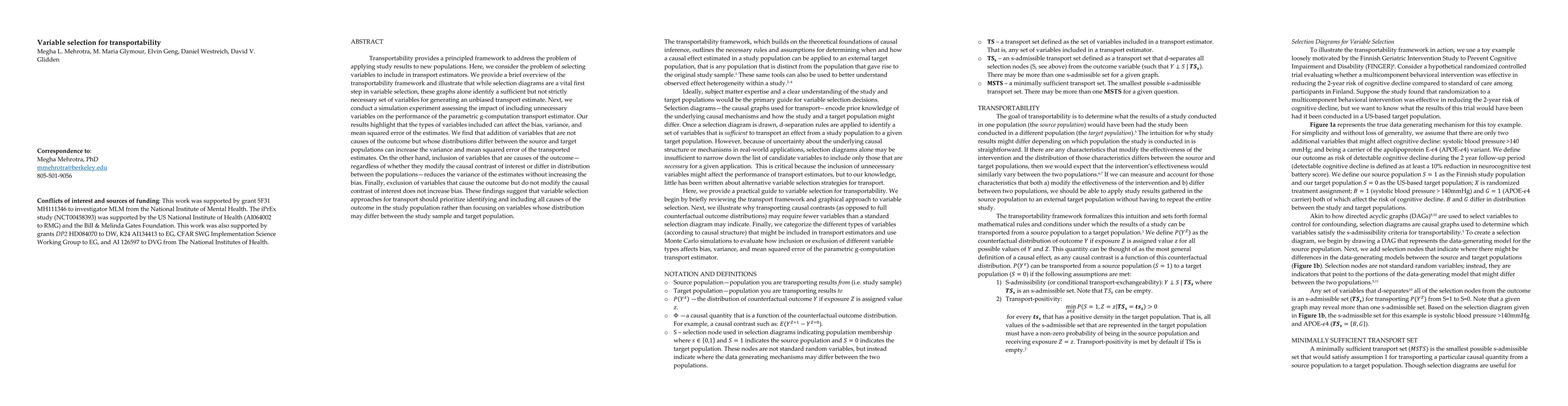 This paper examines variable selection for transport estimators to apply study results to new populations, finding that including unnecessary variables can increase variance and error. It concludes that prioritizing the inclusion of all causes of the outcome in the study population is more effective than focusing on variables differing in distribution between populations.