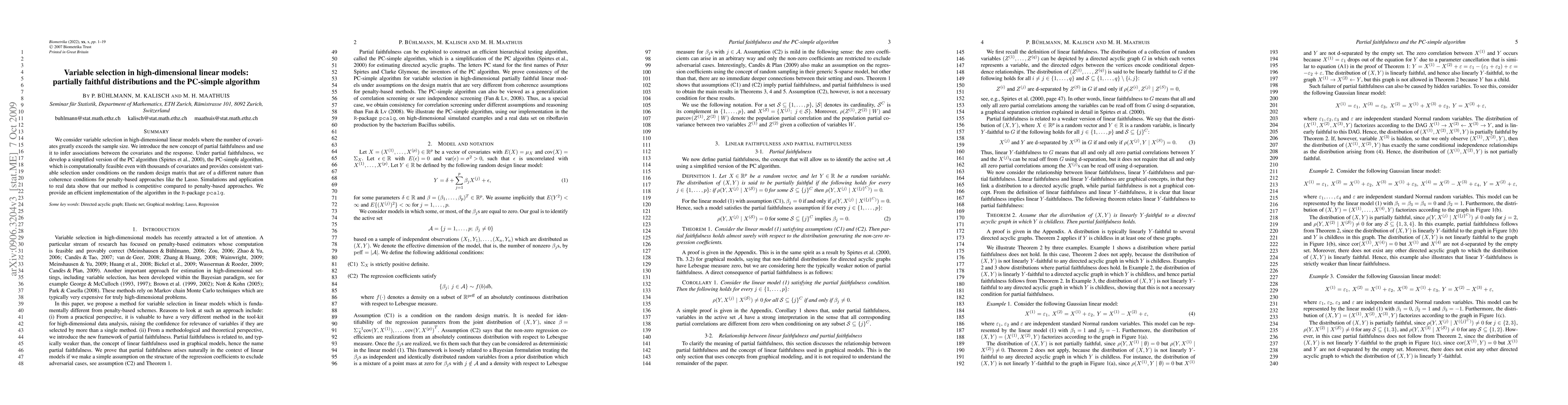 This paper introduces a new concept of partial faithfulness to infer associations in high-dimensional linear models and proposes the PC-simple algorithm, a simplified version of the PC algorithm, for computationally feasible variable selection. The method is shown to be competitive with penalty-based approaches through simulations and real data applications.