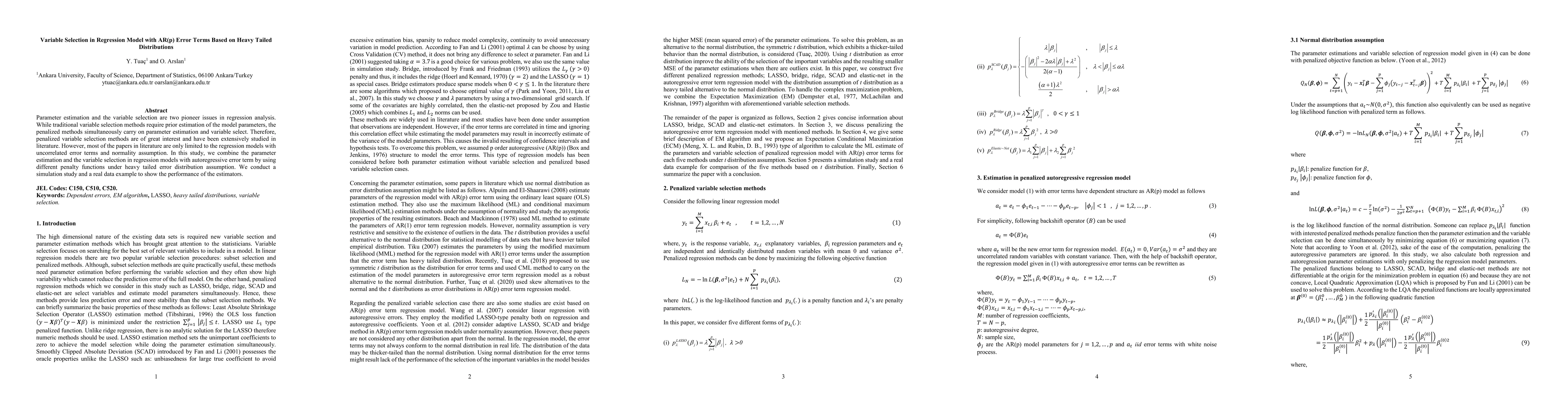 This paper proposes penalized variable selection methods for regression models with AR(p) error terms under heavy-tailed distributions, integrating parameter estimation and variable selection. The study evaluates the performance through simulations and real data examples.