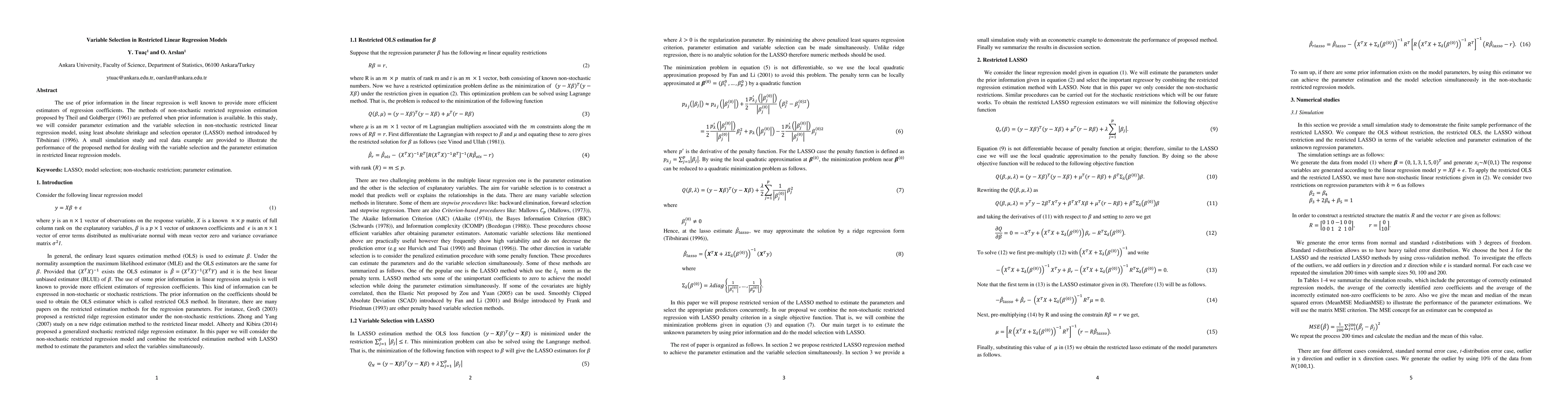 This paper explores the use of the LASSO method for variable selection and parameter estimation in non-stochastic restricted linear regression models, leveraging prior information for improved efficiency. Simulation and real data examples demonstrate the effectiveness of the proposed approach.