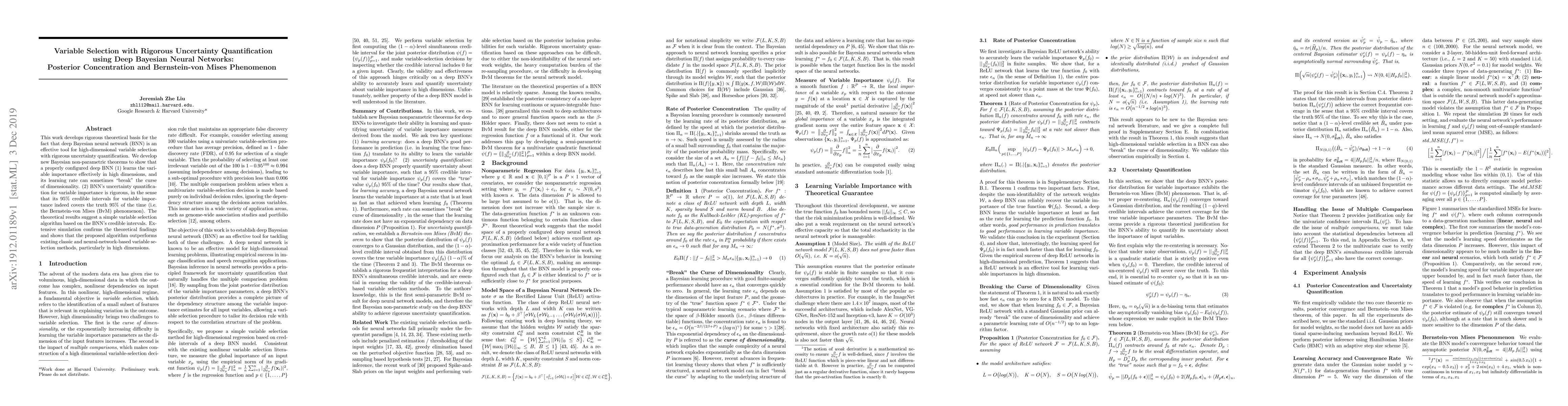 This paper establishes a rigorous theoretical foundation for deep Bayesian neural networks (BNN) in high-dimensional variable selection, demonstrating their effectiveness and uncertainty quantification through the Bernstein-von Mises phenomenon. Simulation results show that the proposed BNN-based variable selection algorithm outperforms existing methods.