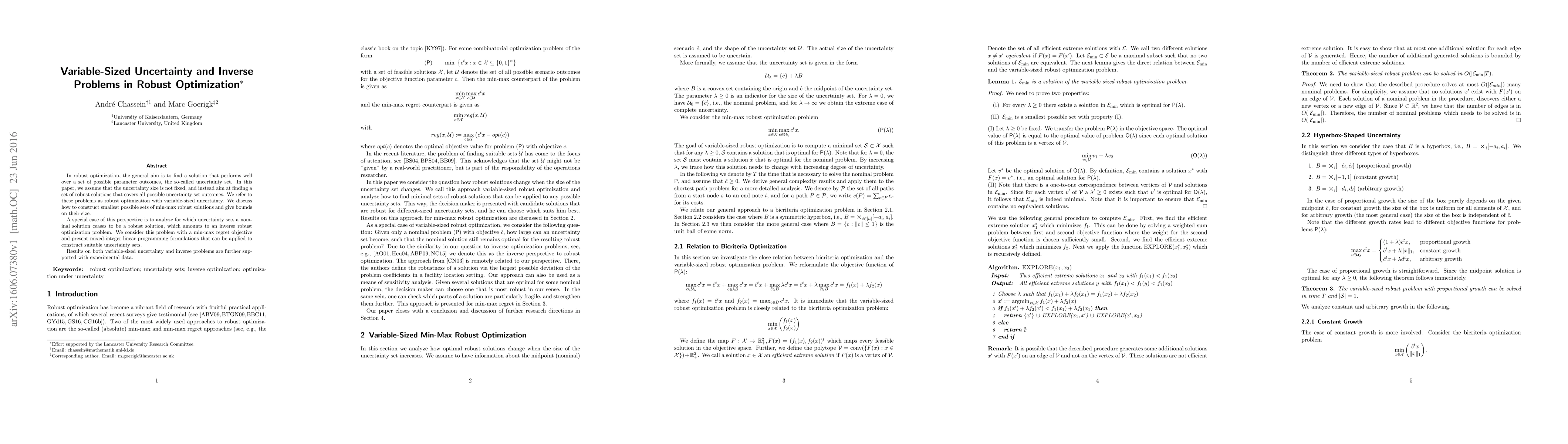 This paper explores robust optimization with variable-sized uncertainty, focusing on finding sets of solutions that cover all possible uncertainty outcomes. It introduces methods to construct the smallest possible sets of min-max robust solutions and presents mixed-integer linear programming formulations for inverse robust optimization problems. Experimental results support the theoretical findings.