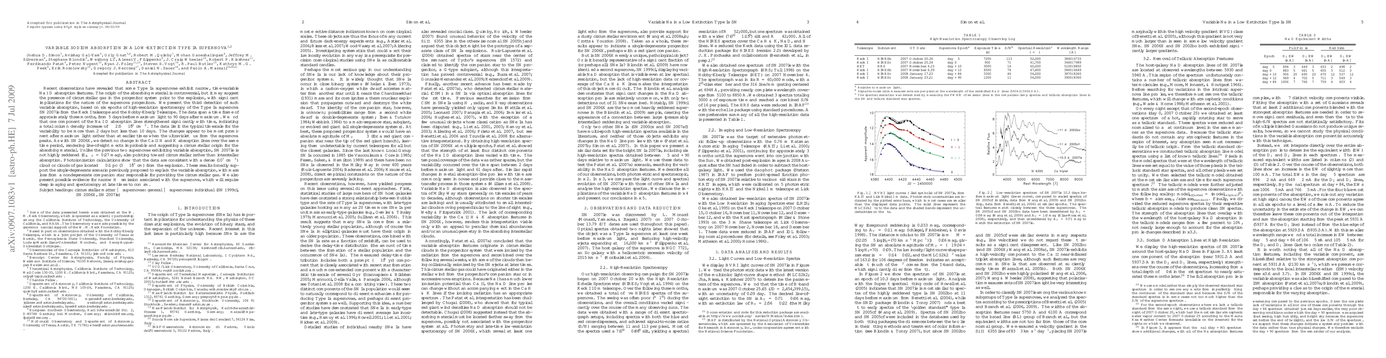 This paper reports the third detection of variable sodium absorption in a Type Ia supernova, SN 2007le, suggesting the presence of circumstellar gas likely from a progenitor system. The observed increase in absorption indicates a dense cloud of gas near the supernova, supporting the single-degenerate progenitor model.