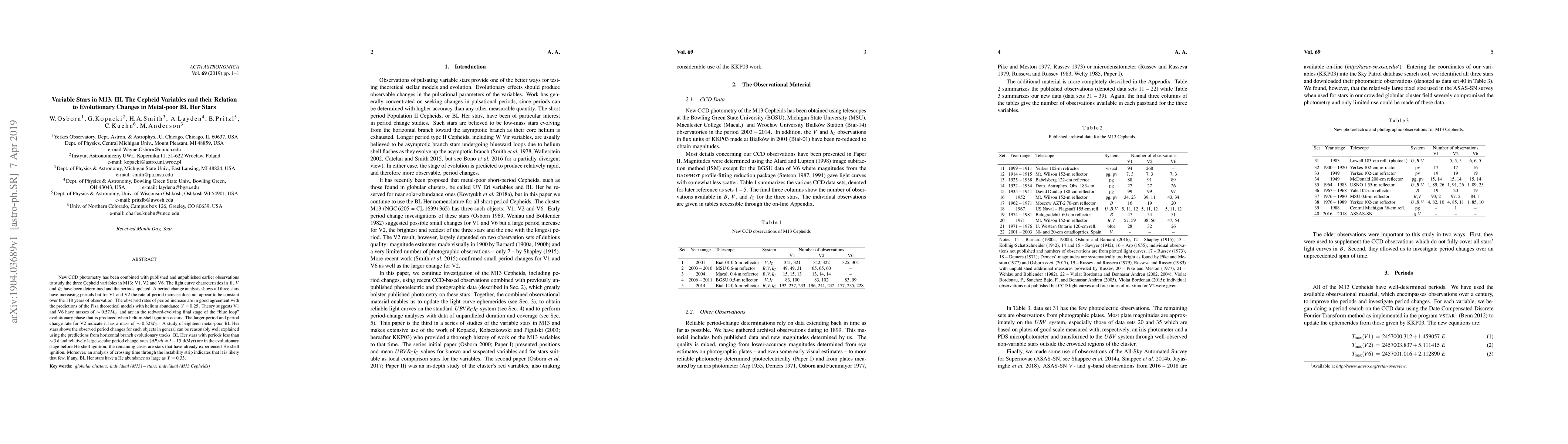 This paper investigates the Cepheid variables in M13, finding increasing period trends that align with Pisa theoretical models. It also correlates the period changes of metal-poor BL Her stars with their evolutionary stages, suggesting most have not reached helium-shell ignition.