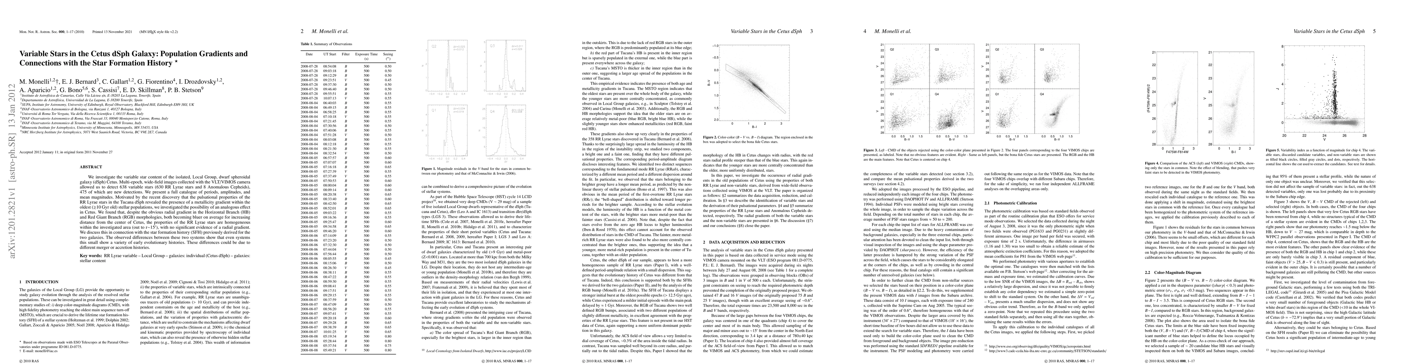 We investigate the variable star content of the isolated, Local Group, dwarf spheroidal galaxy (dSph) Cetus. Multi-epoch, wide-field images collected with the VLT/VIMOS camera allowed us to detect 638 variable stars (630 RR Lyrae stars and 8 Anomalous Cepheids), 475 of which are new detections. We present a full catalogue of periods, amplitudes, and mean magnitudes. Motivated by the recent discovery that the pulsational properties of the RR Lyrae stars in the Tucana dSph revealed the presence of a metallicity gradient within the oldest (>10 Gyr old) stellar populations, we investigated the possibility of an analogous effect in Cetus. We found that, despite the obvious radial gradient in the Horizontal Branch (HB) and Red Giant Branch (RGB) morphologies, both becoming bluer on average for increasing distance from the center of Cetus, the properties of the RR Lyrae stars are homogeneous within the investigated area (out to r~15'), with no significant evidence of a radial gradient. We discuss this in connection with the star formation history (SFH) previously derived for the two galaxies. The observed differences between these two systems show that even systems this small show a variety of early evolutionary histories. These differences could be due to different merger or accretion histories.