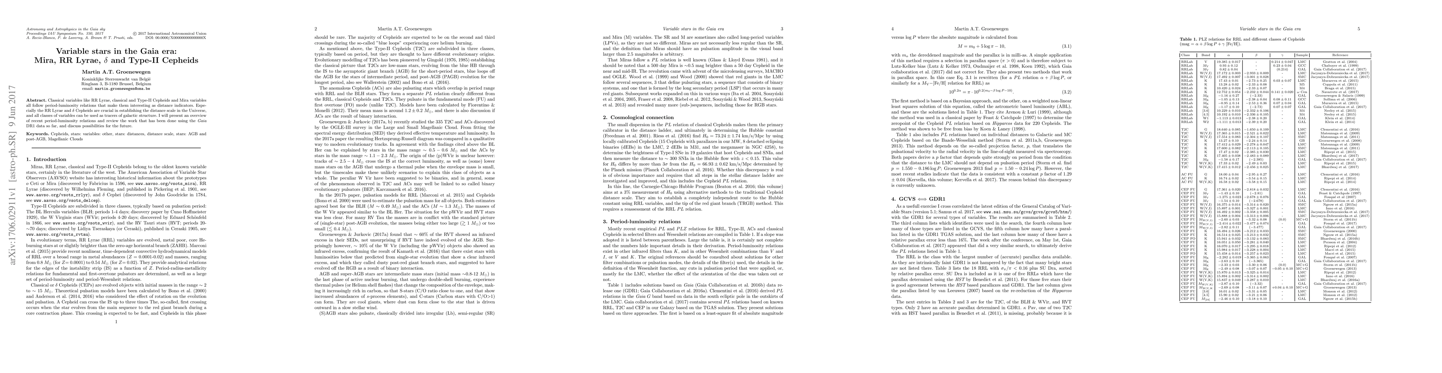 This paper provides an overview of classical variable stars, including RR Lyrae, Type-II Cepheids, and Mira variables, highlighting their period-luminosity relations and importance as distance indicators. It reviews recent advancements using Gaia DR1 data and explores future research possibilities.