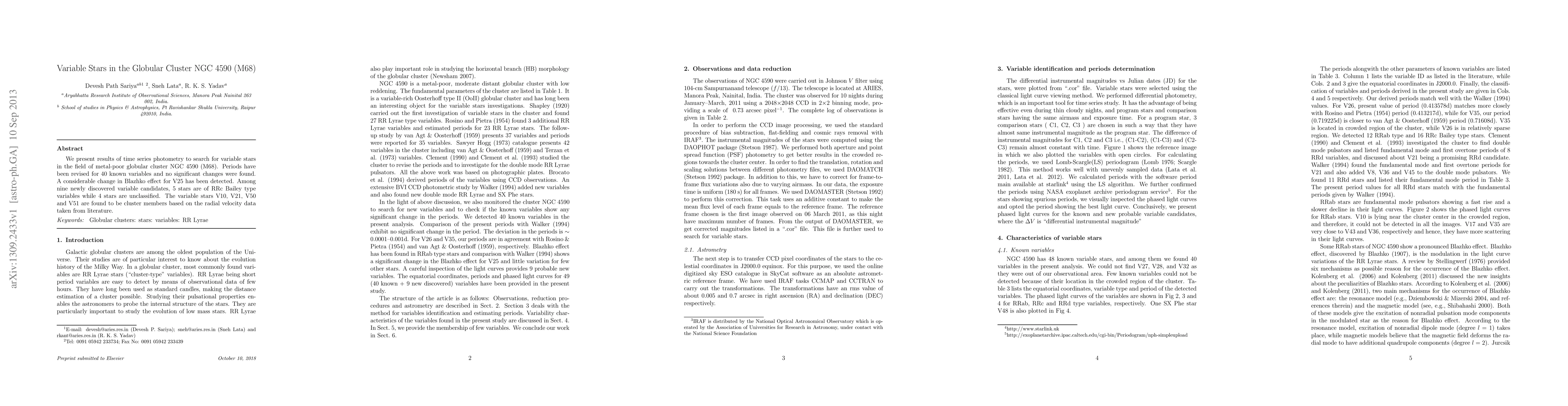 This study reports on time series photometry of the globular cluster NGC 4590 (M68), revealing no significant changes in periods for 40 known variable stars, with a notable change in the Blazhko effect for V25. Nine new variable candidates were identified, including five RRc Bailey type variables and four unclassified stars, with four confirmed as cluster members via radial velocity data.