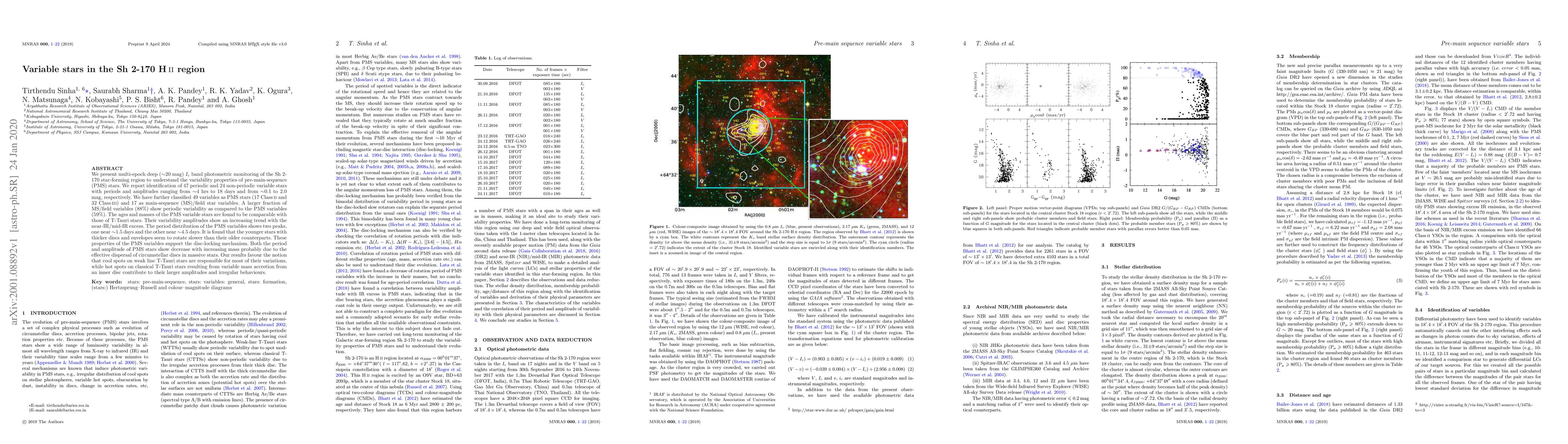 We present multi-epoch deep ($\sim$20 mag) $I_{c}$~band photometric monitoring of the Sh 2-170 star-forming region to understand the variability properties of pre-main-sequence (PMS) stars. We report identification of 47 periodic and 24 non-periodic variable stars with periods and amplitudes ranging from $\sim$4 hrs to 18 days and from $\sim$0.1 to 2.0 mag, respectively. We have further classified 49 variables as PMS stars (17 Class\,{\sc ii} and 32 Class\,{\sc iii}) and 17 as main-sequence (MS)/field star variables. A larger fraction of MS/field variables (88\%) show periodic variability as compared to the PMS variables (59\%). The ages and masses of the PMS variable stars are found to be comparable with those of T-Tauri stars. Their variability amplitudes show an increasing trend with the near-IR/mid-IR excess. The period distribution of the PMS variables shows two peaks, one near $\sim$1.5 days and the other near $\sim$4.5 days. It is found that the younger stars with thicker discs and envelopes seem to rotate slower than their older counterparts. These properties of the PMS variables support the disc-locking mechanism. Both the period and amplitude of PMS stars show decrease with increasing mass probably due to the effective dispersal of circumstellar discs in massive stars. Our results favour the notion that cool spots on weak line T-Tauri stars are responsible for most of their variations, while hot spots on classical T-Tauri stars resulting from variable mass accretion from an inner disc contribute to their larger amplitudes and irregular behaviours.