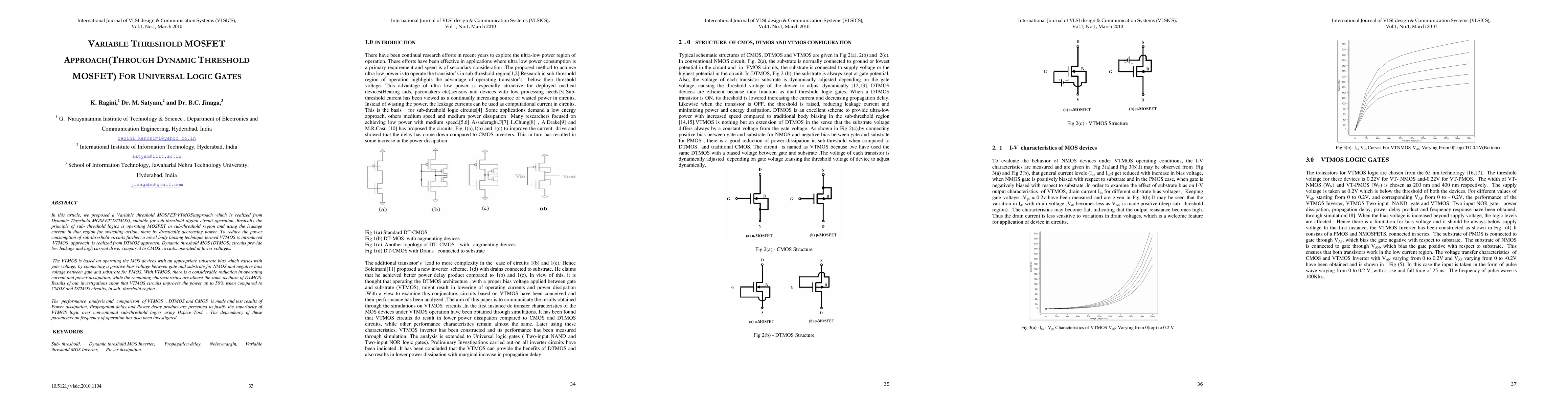 Researchers propose a Variable Threshold MOSFET approach to reduce power consumption in sub-threshold digital circuits, achieving up to 50% power savings compared to conventional CMOS and DTMOS logic.