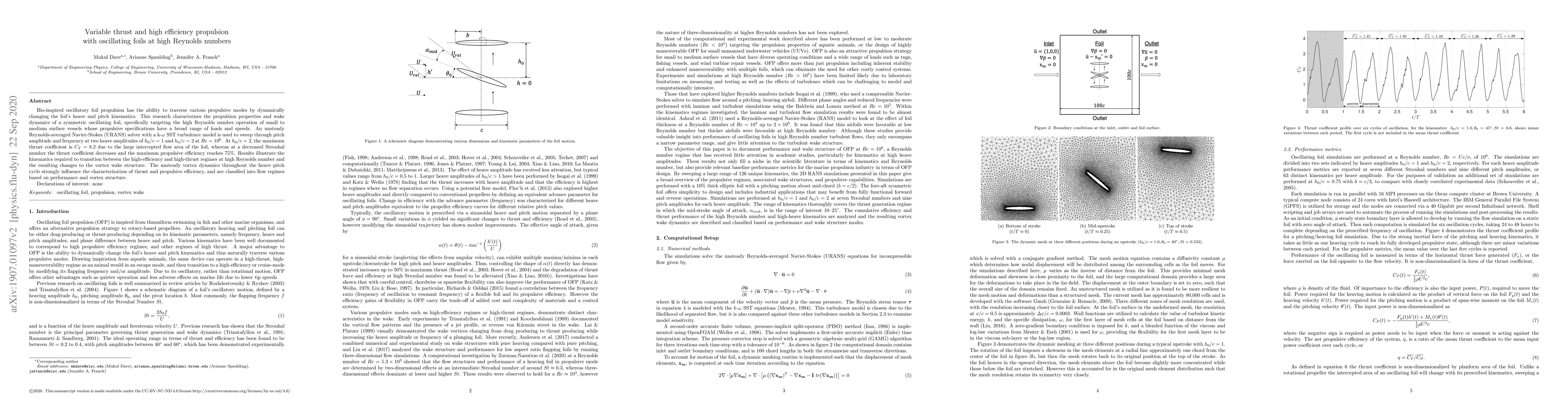 This study investigates the propulsion and wake dynamics of oscillating foils at high Reynolds numbers, revealing that large heave amplitudes and moderate pitch frequencies yield high thrust coefficients, while lower Strouhal numbers enhance propulsive efficiency up to 75%. The research categorizes flow regimes based on performance and vortex structure, highlighting the impact of unsteady vortex dynamics on propulsion efficiency.