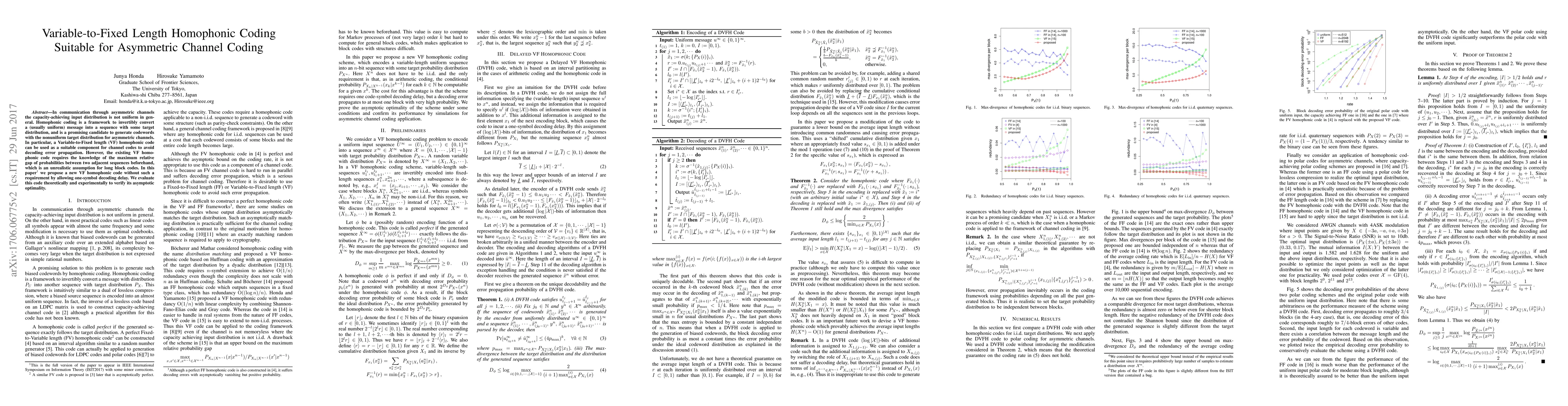 This paper proposes a new Variable-to-Fixed length homophonic coding scheme that doesn't require knowledge of the maximum relative gap of probabilities between two adjacent sequences, making it suitable for asymmetric channel coding and asymptotically optimal.