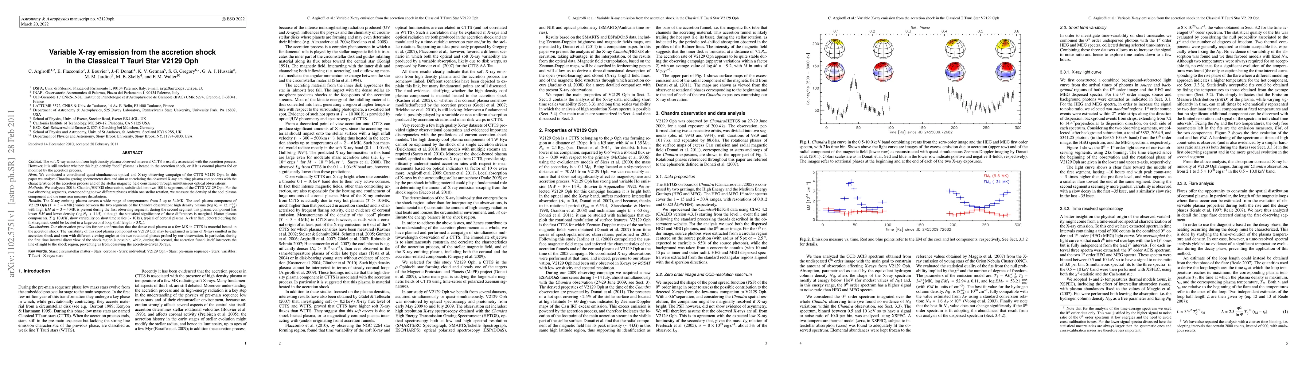 This study investigates the variable X-ray emission from the accretion shock in the Classical T Tauri Star V2129 Oph, revealing that the dense cool plasma is heated in the accretion shock. The analysis shows significant variability in the cool plasma component between two phases of the star's rotation, suggesting that the observed X-rays are influenced by the viewing angle of the accretion shock.