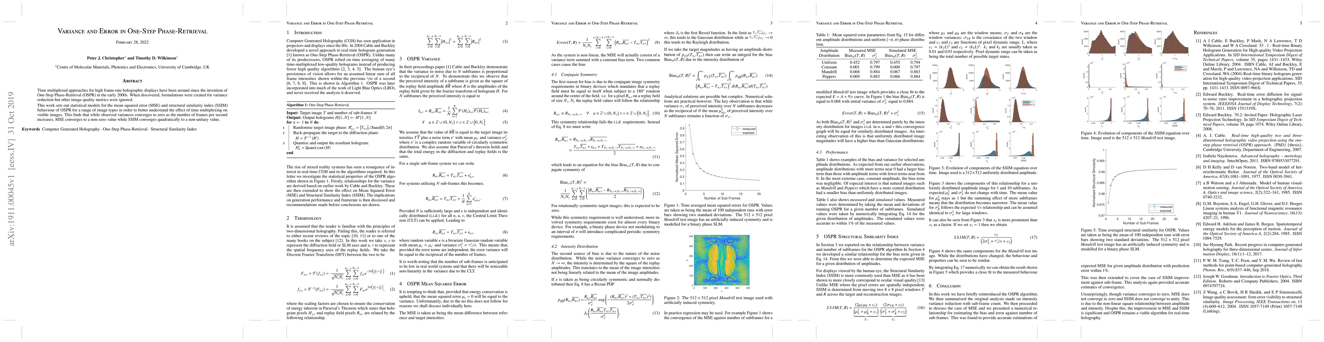Time multiplexed approaches for high frame-rate holographic displays have been around since the invention of One-Step Phase-Retrieval (OSPR) in the early 2000s. When discovered, formulations were created for variance reduction but other image quality metrics were ignored. This work sets out statistical models for the mean squared error (MSE) and structural similarity index (SSIM) behaviour of OSPR for a range of image types in order to better understand the effect of time multiplexing on visible images. This finds that while observed variances converges to zero as the number of frames per second increases, MSE converges to a non-zero value while SSIM converges quadratically to a non-unitary value.