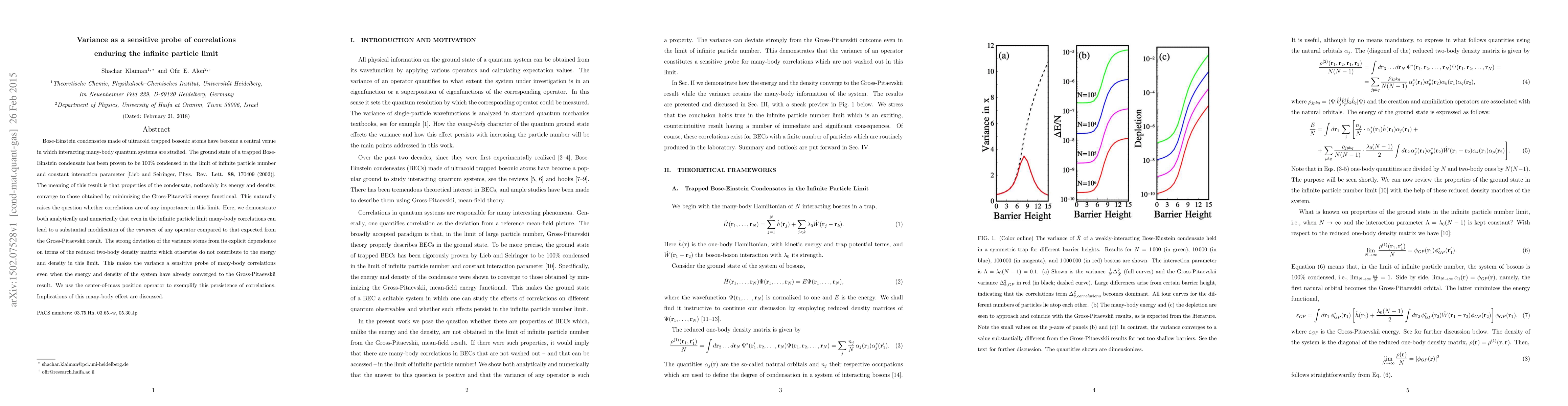 This paper demonstrates that despite the convergence of energy and density to Gross-Pitaevskii predictions in the infinite particle limit of Bose-Einstein condensates, many-body correlations significantly affect the variance of operators, revealing persistent correlations through this sensitive probe. The center-of-mass position operator exemplifies this phenomenon.