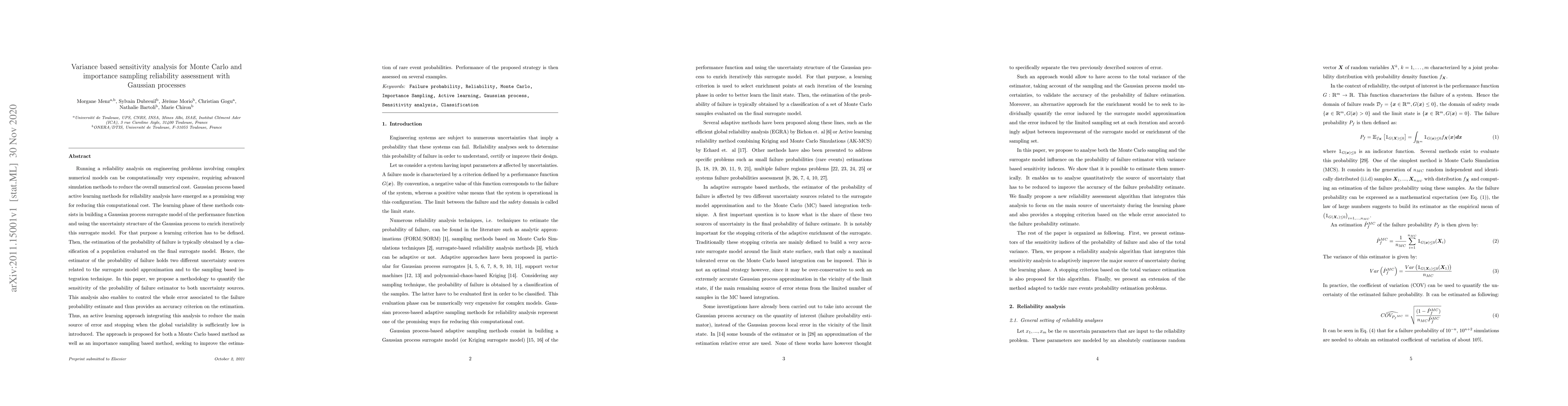 This paper proposes a variance-based sensitivity analysis for assessing the reliability of complex numerical models using Gaussian processes. It introduces a methodology to quantify the sensitivity of failure probability estimates to uncertainties in surrogate models and sampling techniques, aiming to improve the accuracy of rare event probability estimation through an active learning approach.