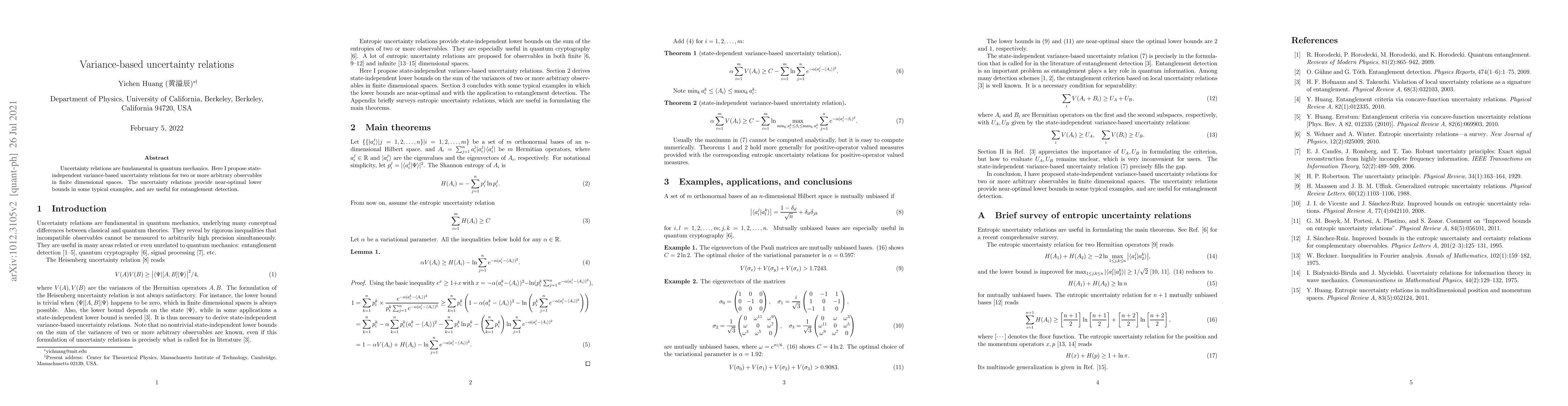 The proposal of state-independent variance-based uncertainty relations provides a novel tool for entanglement detection and quantum information processing