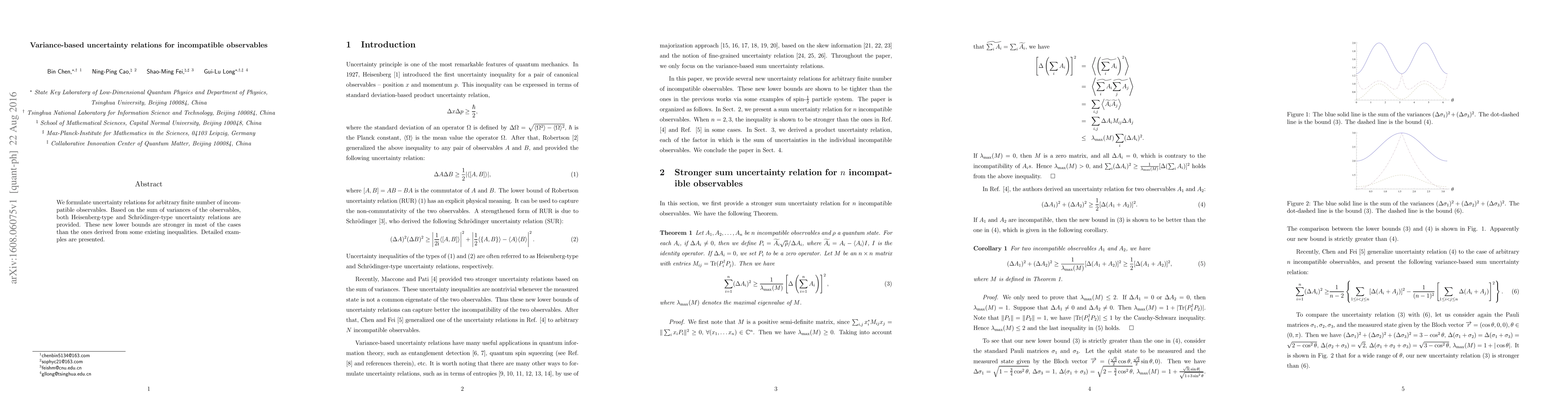 This paper formulates new uncertainty relations for multiple incompatible observables, presenting both Heisenberg-type and Schrödinger-type bounds based on variance sums. The derived lower bounds often surpass existing inequalities, with detailed illustrative examples provided.