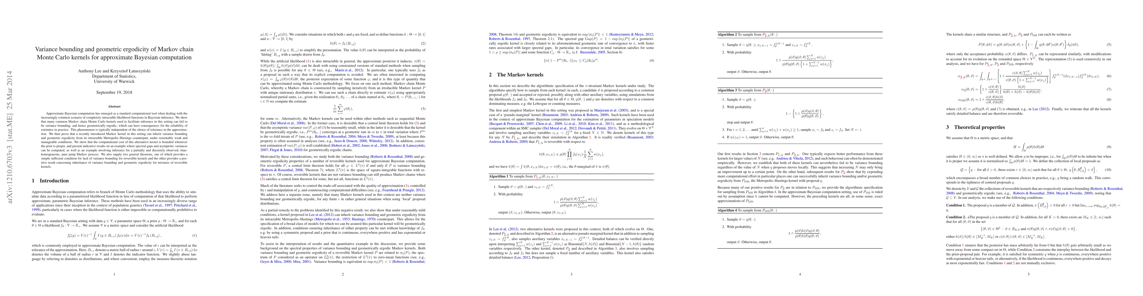 This paper investigates the variance bounding and geometric ergodicity of Markov chain Monte Carlo kernels used in approximate Bayesian computation, revealing that many common kernels fail to meet these criteria, which impacts the reliability of inference. It introduces a new kernel that inherits these properties from its intractable counterpart, ensuring bounded computational costs and providing theoretical results and examples to support its efficacy.