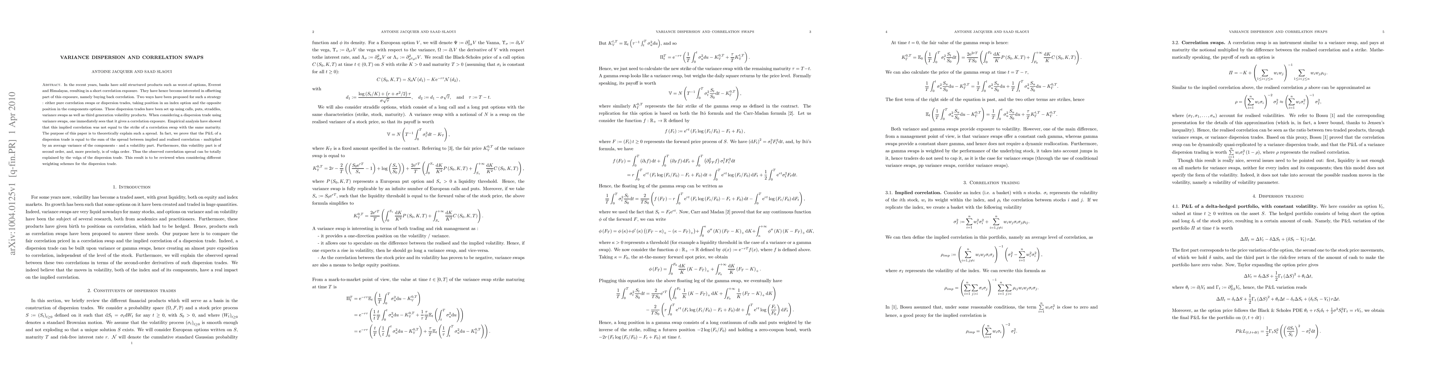 This paper explores the theoretical underpinnings of dispersion trades using variance swaps to offset short correlation exposure from selling structured products. It demonstrates that the profit and loss of such trades is primarily driven by the difference between implied and realized correlation, multiplied by the average variance of the components, and a secondary volatility component of volga order.