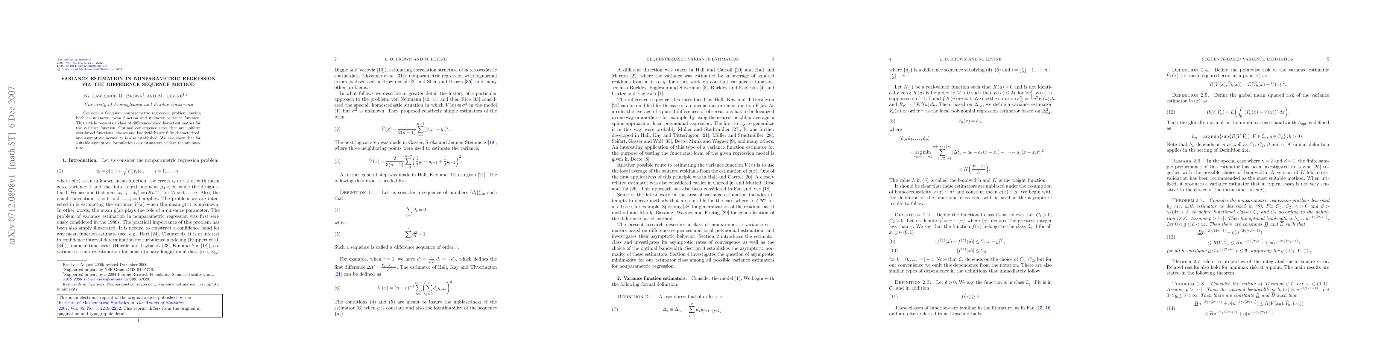 This paper introduces difference-based kernel estimators for the variance function in Gaussian nonparametric regression, providing optimal convergence rates and asymptotic normality. The proposed estimators achieve the minimax rate under suitable asymptotic conditions.