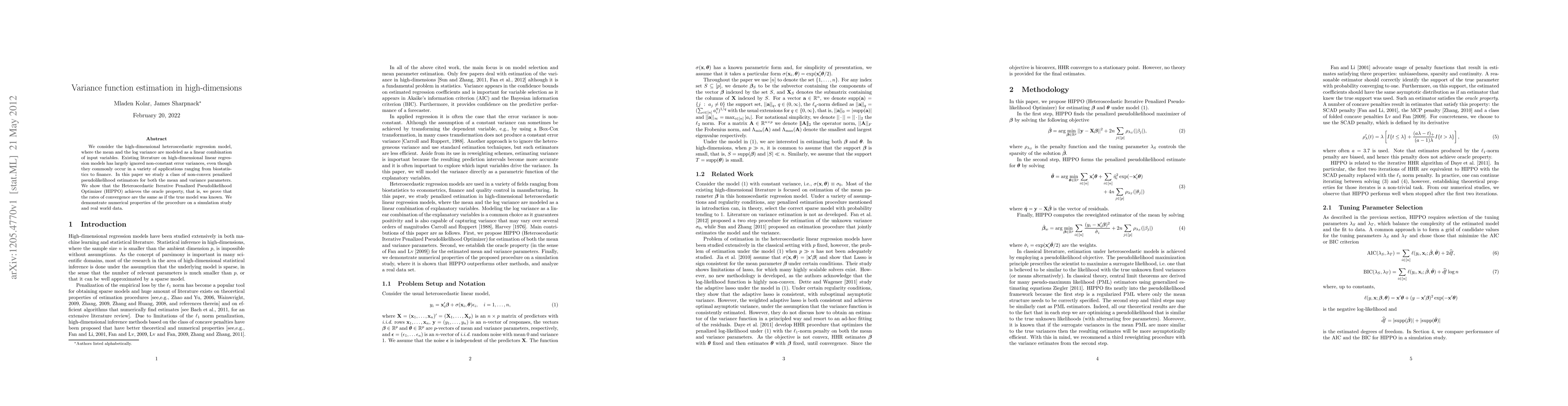 Researchers developed a new method to estimate variance functions in high-dimensional data with non-constant error variances, achieving the same convergence rates as known models.
