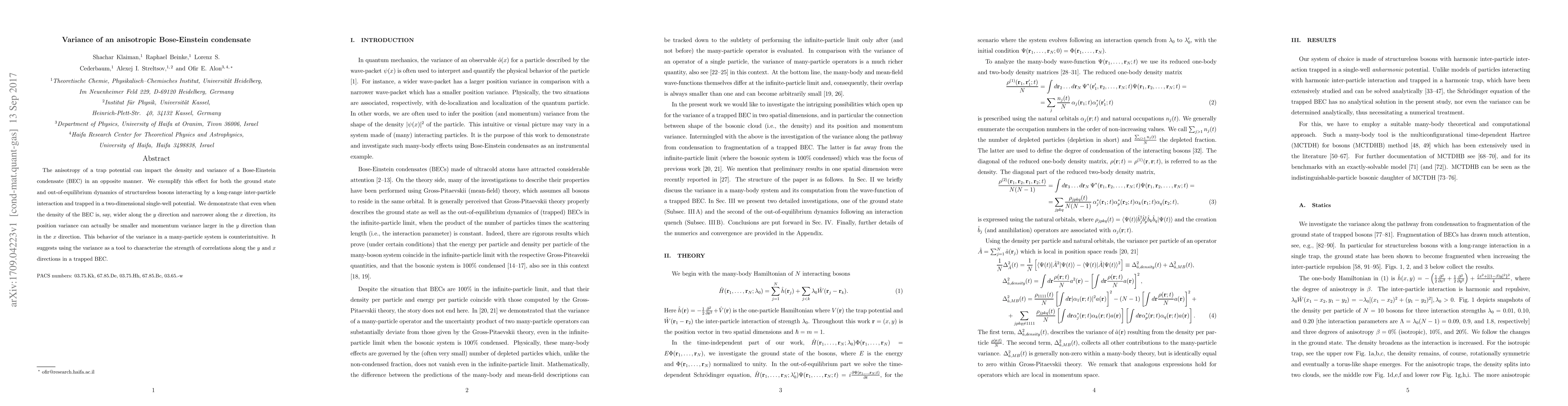 The anisotropy of a trap potential can impact the density and variance of a Bose-Einstein condensate (BEC) in an opposite manner. We exemplify this effect for both the ground state and out-of-equilibrium dynamics of structureless bosons interacting by a long-range inter-particle interaction and trapped in a two-dimensional single-well potential. We demonstrate that even when the density of the BEC is, say, wider along the $y$ direction and narrower along the $x$ direction, its position variance can actually be smaller and momentum variance larger in the $y$ direction than in the $x$ direction. This behavior of the variance in a many-particle system is counterintuitive. It suggests using the variance as a tool to characterize the strength of correlations along the $y$ and $x$ directions in a trapped BEC.