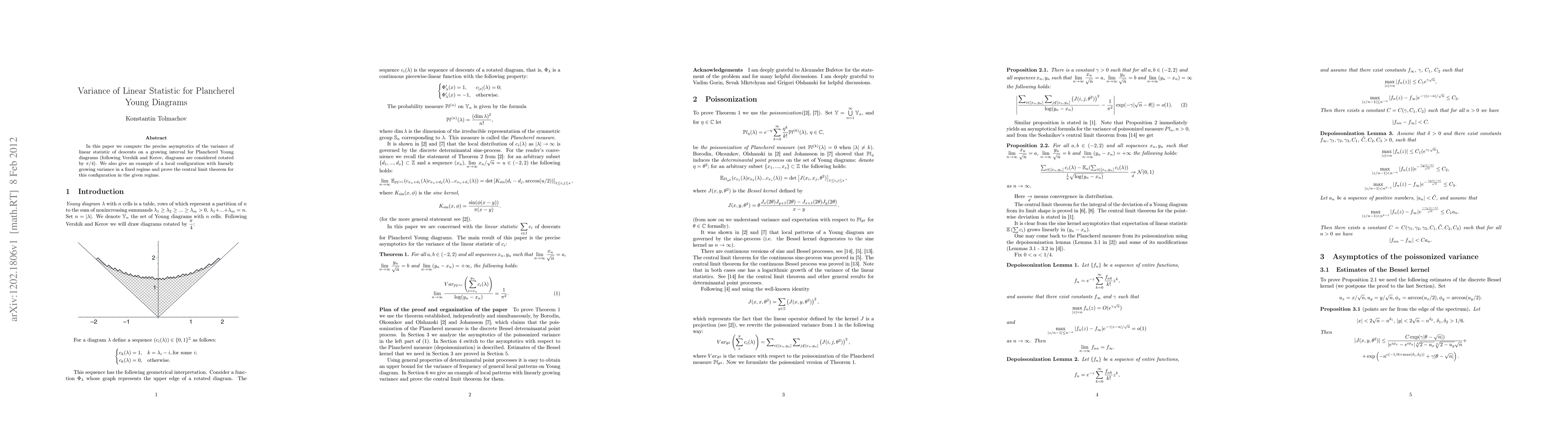 This paper calculates the precise asymptotics of variance in descents on Plancherel Young diagrams for growing intervals, providing new insights into a statistical concept relevant to combinatorics and probability theory.
