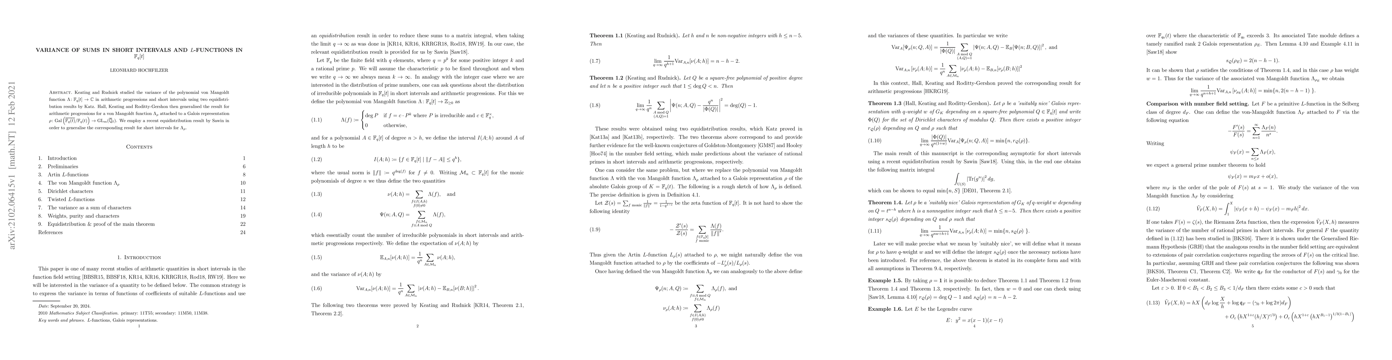 This paper generalizes the variance of sums in short intervals for the polynomial von Mangoldt function $\Lambda_\rho$ associated with Galois representations, building on recent equidistribution results by Sawin. It extends previous work by Keating and Rudnick and Hall, Keating, and Roditty-Gershon on arithmetic progressions.