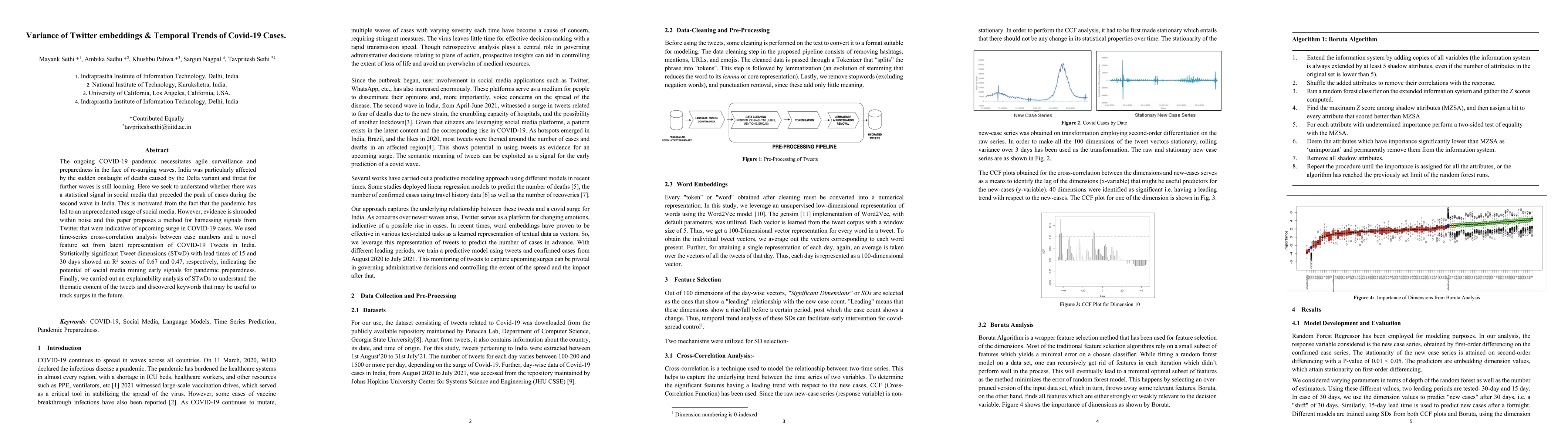 The severity of the coronavirus pandemic necessitates the need of effective administrative decisions. Over 4 lakh people in India succumbed to COVID-19, with over 3 crore confirmed cases, and still counting. The threat of a plausible third wave continues to haunt millions. In this ever changing dynamic of the virus, predictive modeling methods can serve as an integral tool. The pandemic has further triggered an unprecedented usage of social media. This paper aims to propose a method for harnessing social media, specifically Twitter, to predict the upcoming scenarios related to COVID-19 cases. In this study, we seek to understand how the surges in COVID-19 related tweets can indicate rise in the cases. This prospective analysis can be utilised to aid administrators about timely resource allocation to lessen the severity of the damage. Using word embeddings to capture the semantic meaning of tweets, we identify Significant Dimensions (SDs).Our methodology predicts the rise in cases with a lead time of 15 days and 30 days with R2 scores of 0.80 and 0.62 respectively. Finally, we explain the thematic utility of the SDs.