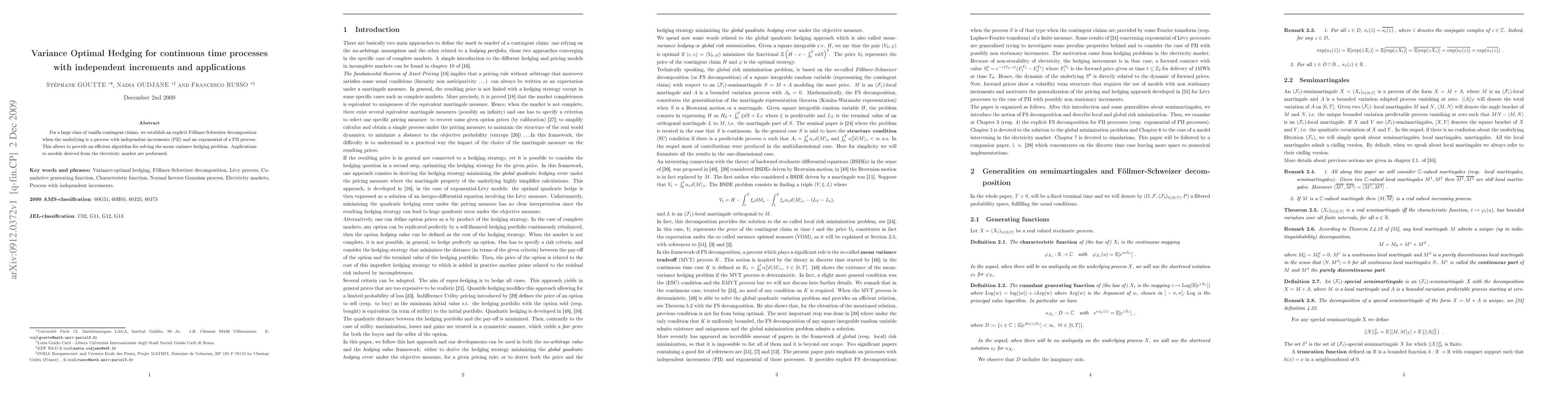 Summary: The paper presents an explicit Föllmer-Schweizer decomposition for vanilla contingent claims under processes with independent increments, enabling an efficient mean-variance hedging algorithm. It applies these methods to models derived from the electricity market.