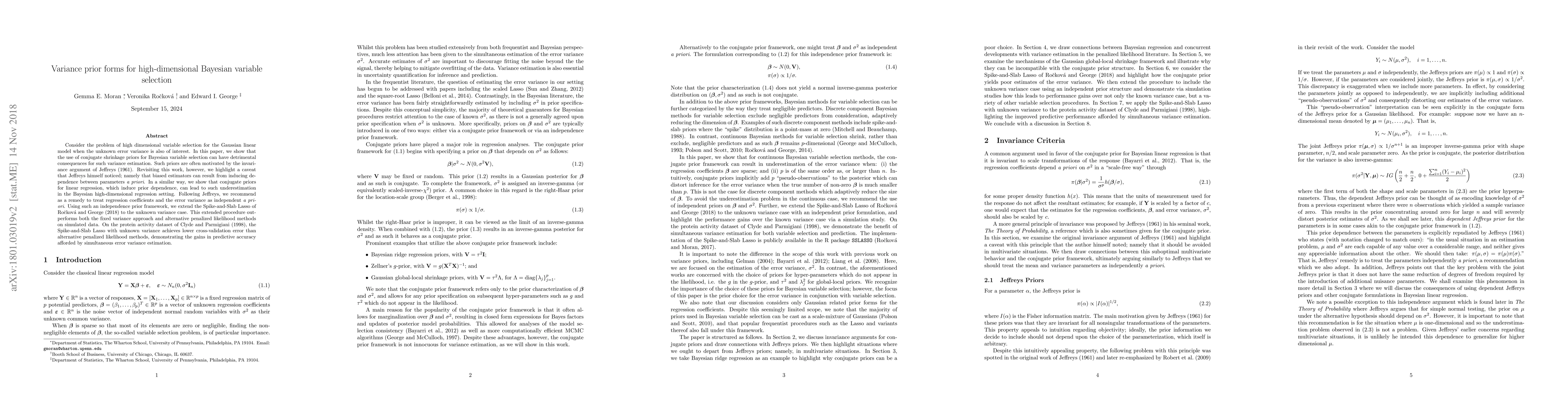 This paper discusses the challenges of high-dimensional Bayesian variable selection in Gaussian linear models, particularly when estimating the error variance. It highlights that conjugate shrinkage priors can lead to biased variance estimation due to induced parameter dependence, and proposes an independence prior framework to address this issue, extending the Spike-and-Slab Lasso method for better predictive accuracy.