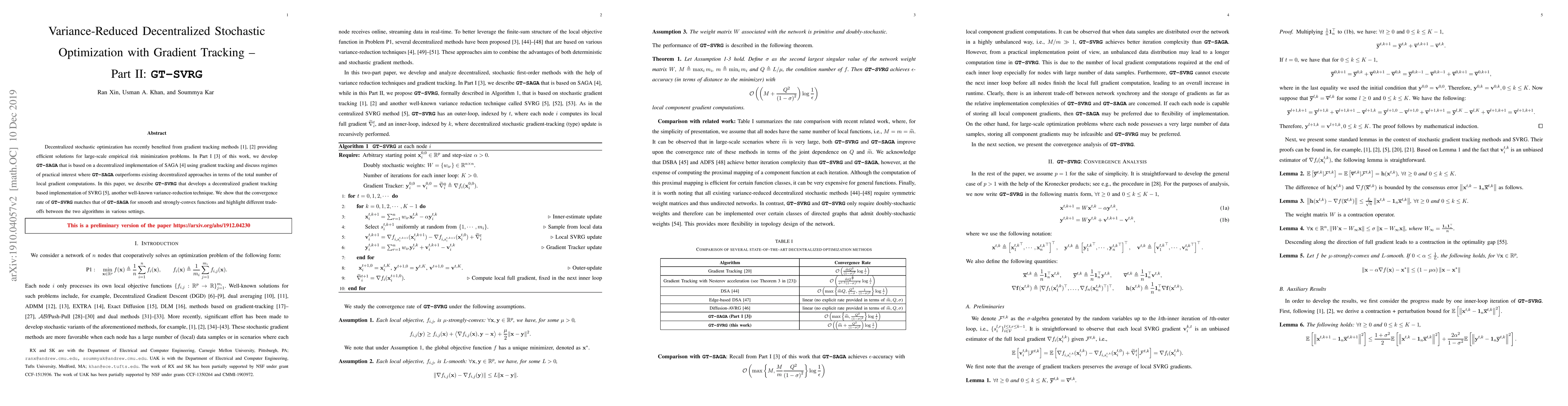 This paper introduces \textbf{\texttt{GT-SVRG}}, a decentralized gradient tracking method based on SVRG, and compares its convergence rate to \textbf{\texttt{GT-SAGA}}, previously developed for decentralized SAGA. The study highlights the trade-offs between these two variance-reduced optimization techniques in large-scale empirical risk minimization.