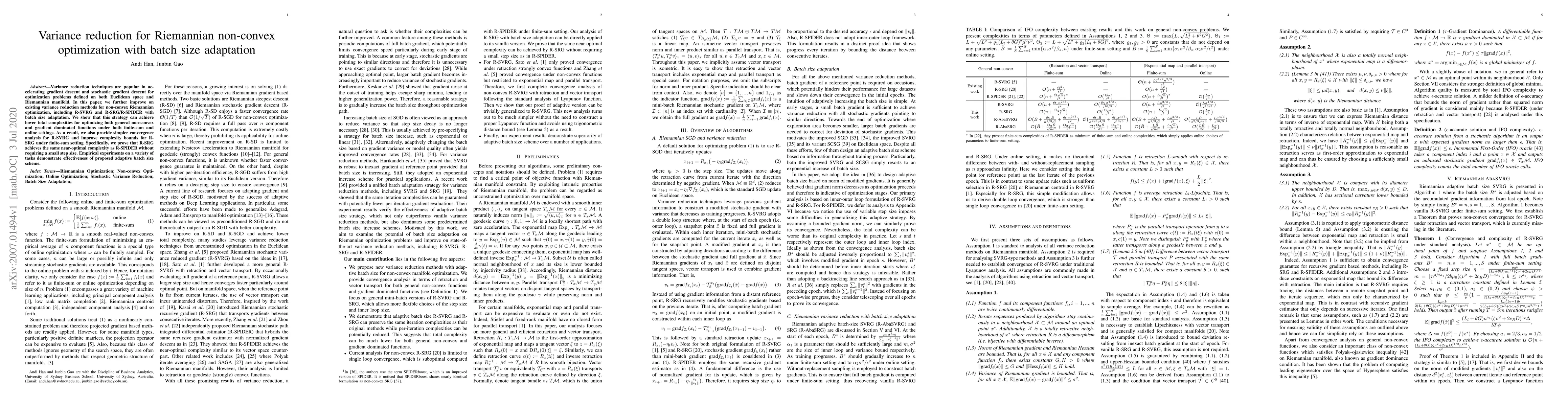 This paper enhances variance reduction techniques for non-convex optimization on Riemannian manifolds, introducing batch size adaptation to improve existing methods like R-SVRG and R-SRG/R-SPIDER. The proposed approach achieves lower complexities for both general non-convex and gradient-dominated functions, with empirical validation showing its effectiveness.