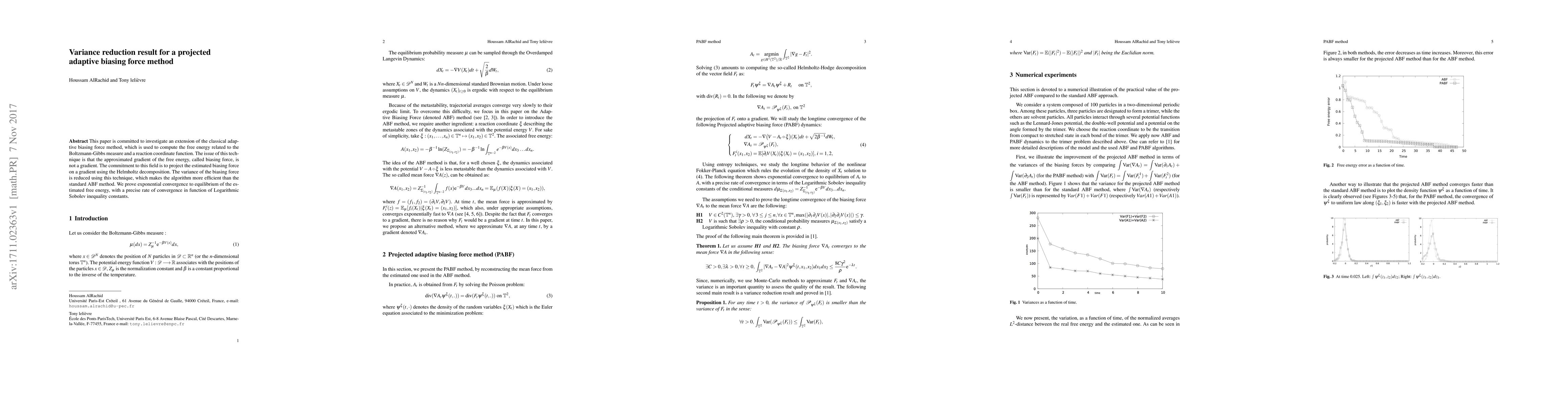 This paper is committed to investigate an extension of the classical adaptive biasing force method, which is used to compute the free energy related to the Boltzmann-Gibbs measure and a reaction coordinate function. The issue of this technique is that the approximated gradient of the free energy, called biasing force, is not a gradient. The commitment to this field is to project the estimated biasing force on a gradient using the Helmholtz decomposition. The variance of the biasing force is reduced using this technique, which makes the algorithm more efficient than the standard ABF method. We prove exponential convergence to equilibrium of the estimated free energy, with a precise rate of convergence in function of Logarithmic Sobolev inequality constants.