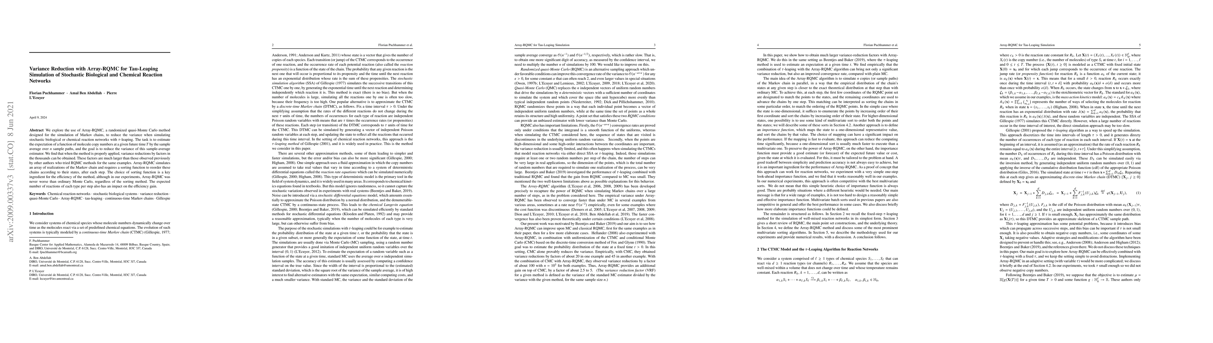 This paper investigates Array-RQMC, a randomized quasi-Monte Carlo method for reducing variance in $\tau$-leaping simulations of stochastic biological and chemical reaction networks. The method achieves significant variance reductions, often by factors of thousands, outperforming previous RQMC approaches.