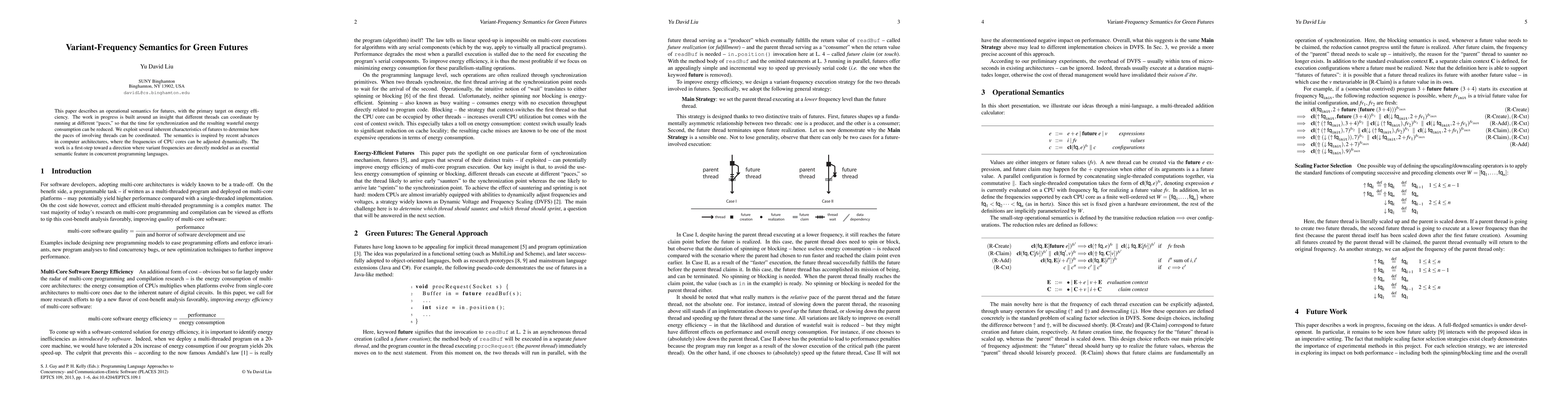 This paper proposes an operational semantics for futures focused on energy efficiency, leveraging the idea that different threads can synchronize at varied "paces" to reduce wasteful energy consumption. It aims to model variant frequencies as a fundamental semantic feature in concurrent programming languages, inspired by dynamic CPU frequency adjustments in modern architectures.