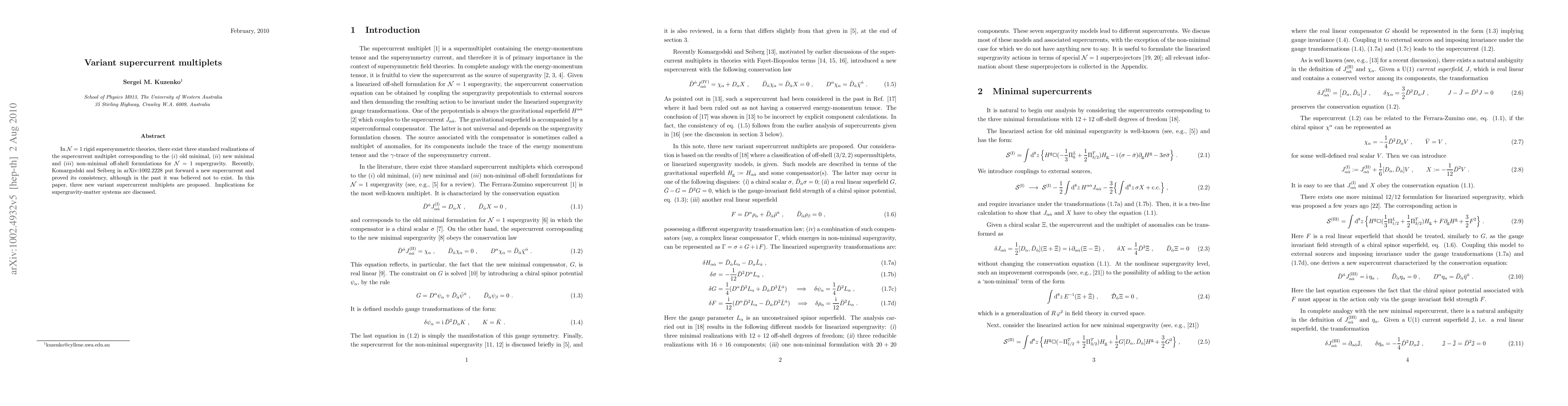 Researchers propose three new variant supercurrent multiplets in N = 1 rigid supersymmetric theories, expanding on previous work by Komargodski and Seiberg, with implications for understanding supergravity-matter systems.