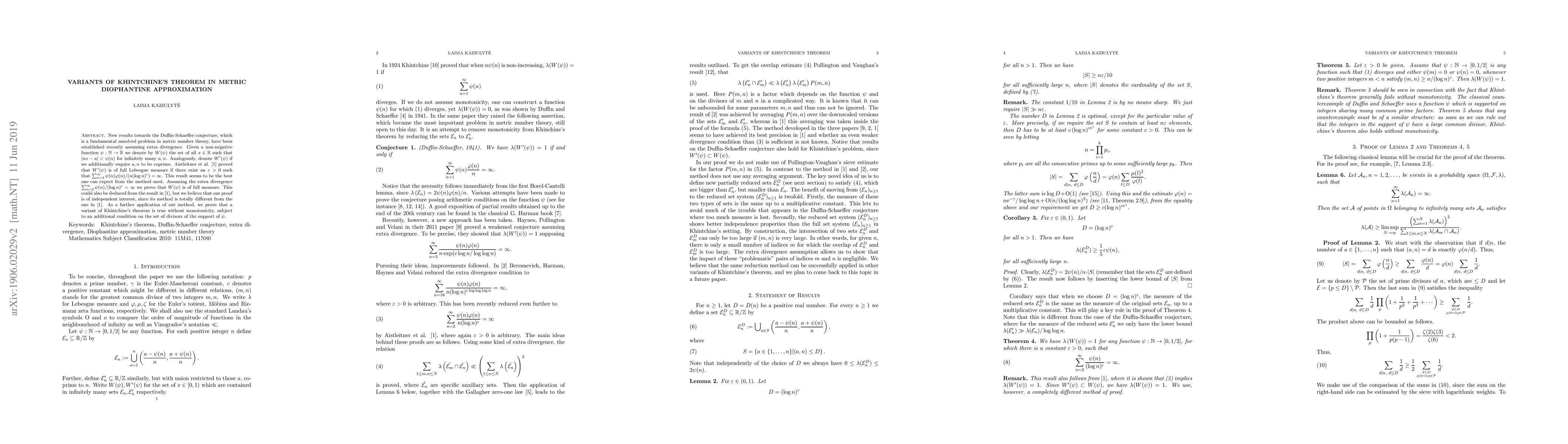 Researchers prove that a variant of Khintchine's theorem holds true under certain conditions, advancing the understanding of metric Diophantine approximation, with implications for solving fundamental problems in number theory.