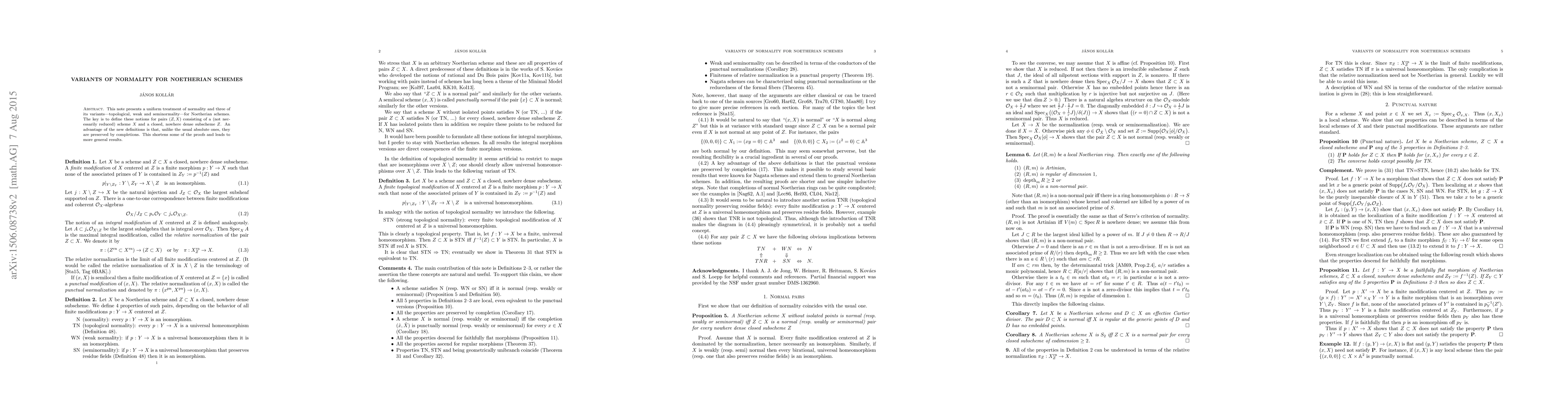 This note presents a uniform treatment of normality and three of its variants---topological, weak and seminormality---for Noetherian schemes. The key is to define these notions for pairs $(Z, X)$ consisting of a (not necessarily reduced) scheme $X$ and a closed, nowhere dense subscheme $Z$. An advantage of the new definitions is that, unlike the usual absolute ones, they are preserved by completions. This shortens some of the proofs and leads to more general results. Version 2: small changes.