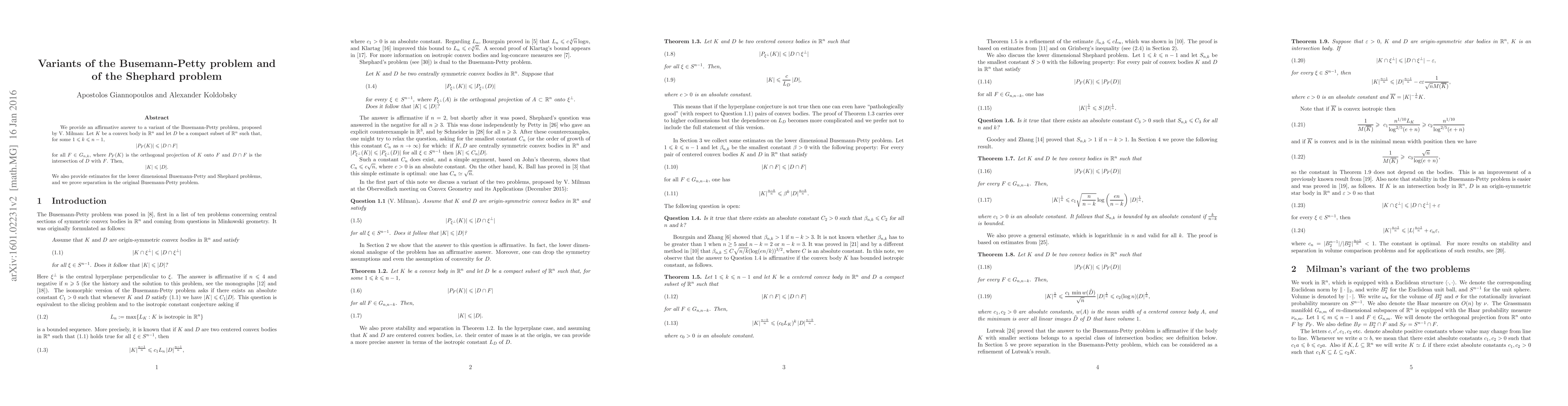 This paper affirmatively resolves a variant of the Busemann-Petty problem proposed by Milman, showing that if the orthogonal projection of a convex body onto any $k$-dimensional subspace is no larger than the intersection of a compact set $D$ with that subspace, then the volume of the convex body is no larger than the volume of $D$. The paper also provides estimates for lower-dimensional versions of the Busemann-Petty and Shephard problems.