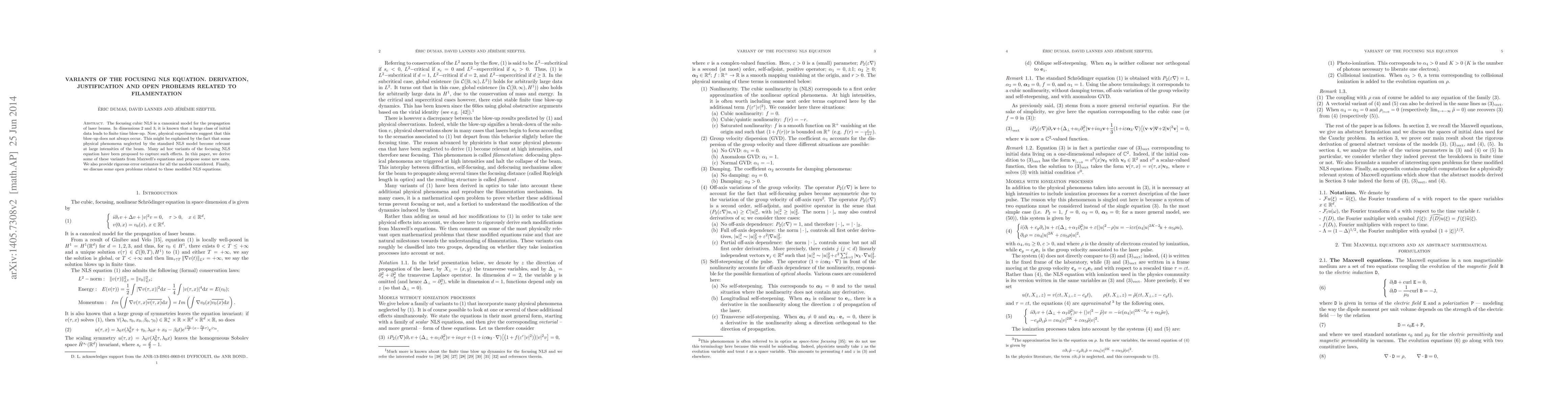 The focusing cubic NLS is a canonical model for the propagation of laser beams. In dimensions 2 and 3, it is known that a large class of initial data leads to finite time blow-up. Now, physical experiments suggest that this blow-up does not always occur. This might be explained by the fact that some physical phenomena neglected by the standard NLS model become relevant at large intensities of the beam. Many ad hoc variants of the focusing NLS equation have been proposed to capture such effects. In this paper, we derive some of these variants from Maxwell's equations and propose some new ones. We also provide rigorous error estimates for all the models considered. Finally, we discuss some open problems related to these modified NLS equations.