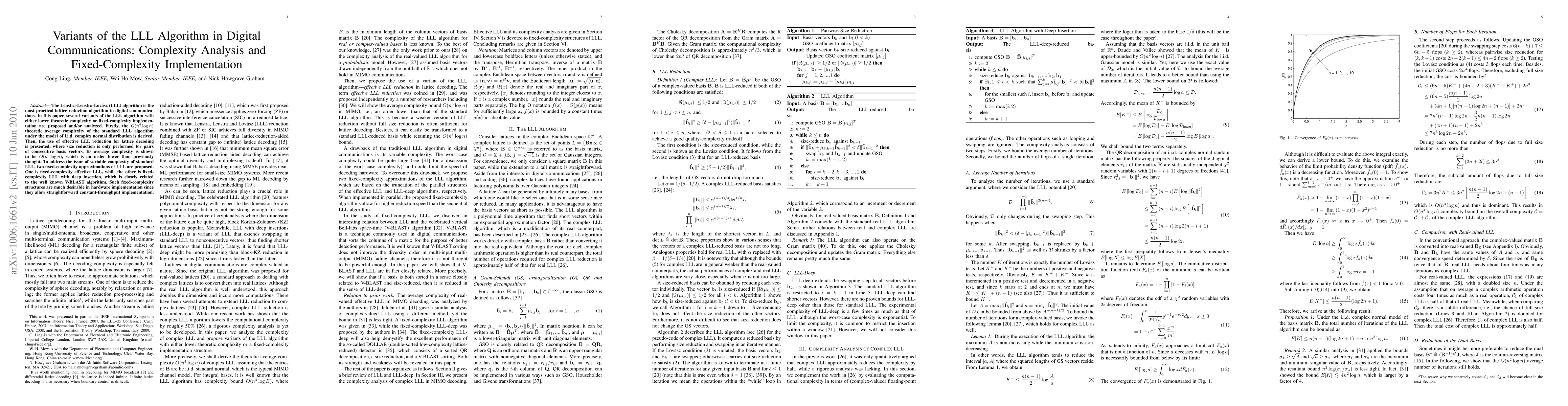 This paper proposes variants of the LLL algorithm for digital communications, analyzing their complexity. It derives the $O(n^4\log n)$ average complexity of the standard LLL and presents an effective LLL variant with reduced complexity of $O(n^3\log n)$. Additionally, it introduces two fixed-complexity LLL approximations for more predictable hardware implementations.