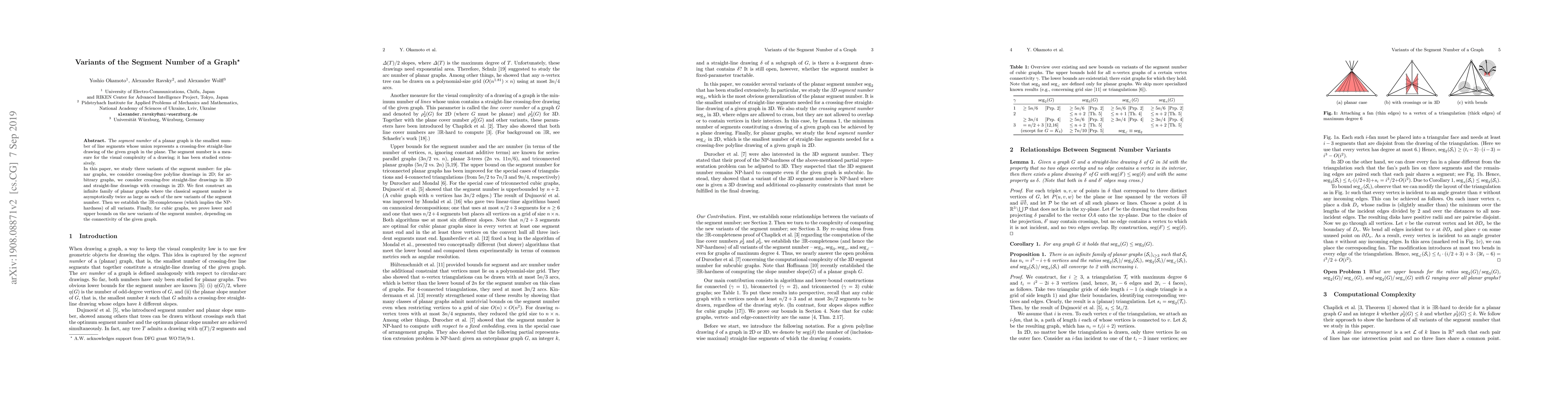 The paper introduces and compares three variants of the segment number for graph drawings, proves their computational complexity, and provides bounds for cubic graphs.