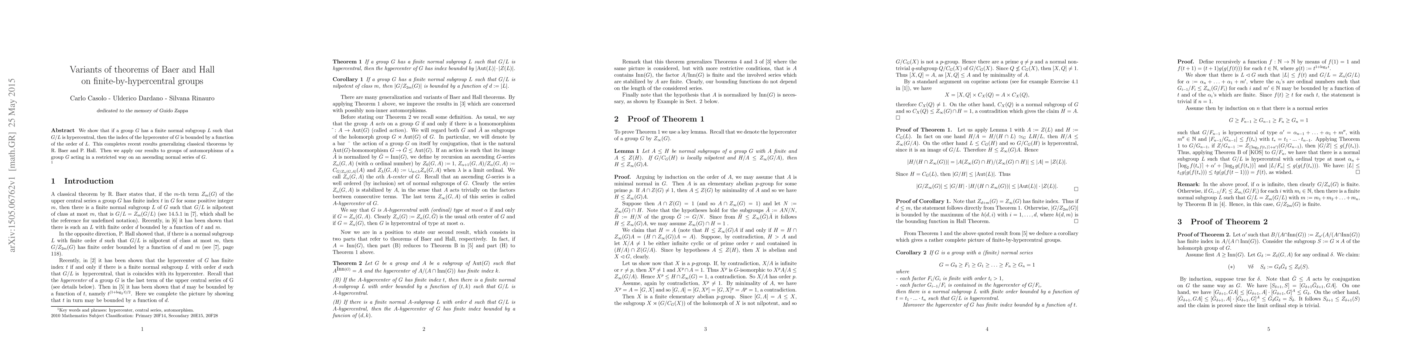 We show that if a group $G$ has a finite normal subgroup $L$ such that $G/L$ is hypercentral, then the index of the hypercenter of $G$ is bounded by a function of the order of $L$. This completes recent results generalizing classical theorems by R. Baer and P. Hall. Then we apply our results to groups of automorphisms of a group $G$ acting in a restricted way on an ascending normal series of $G$.